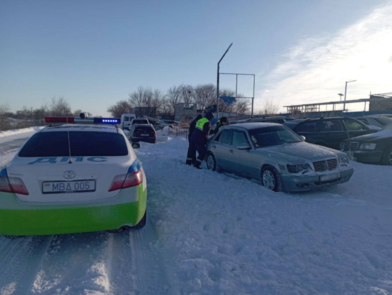 На затруднённых участках дорог дежурят сотрудники ГАИ, готовые прийти на помощь водителям