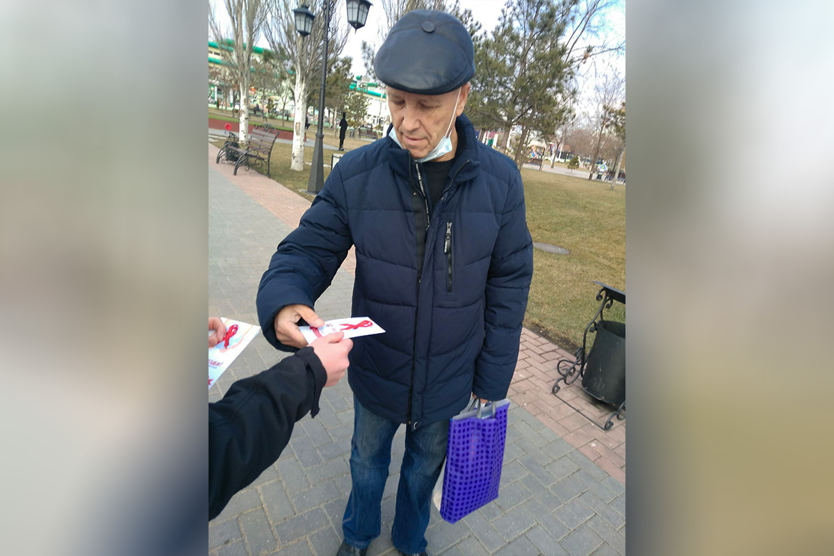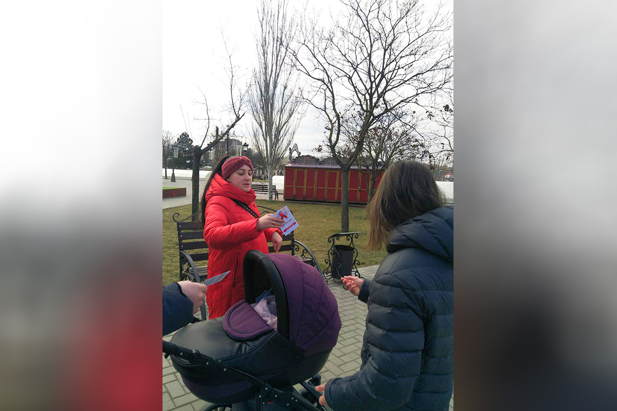 Молодые люди раздавали прохожим памятки о мерах профилактики онкозаболеваний