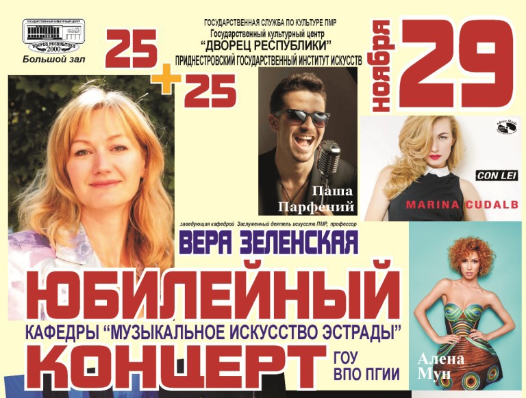 Концерт эстрадной и джазовой музыки «25+25» посвящён юбилеям кафедры «Музыкальное искусство эстрады» Приднестровского государственного института искусств и её заведующей — заслуженному деятелю искусств ПМР Вере Зеленской.