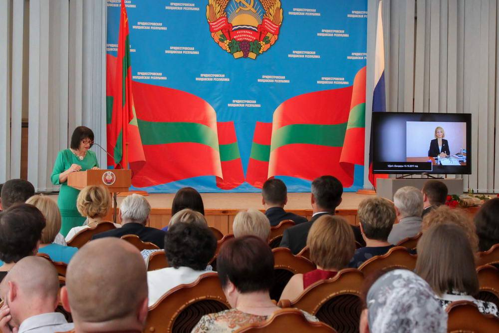 От имени Президента ПМР приветственный адрес зачитал Сергей Белоус. «В ПМР функционирует разветвленная сеть архивов. Знаю, в них трудятся настоящие профессионалы, которые изо дня в день бережно сохраняют национальную память», - говорится в документе.