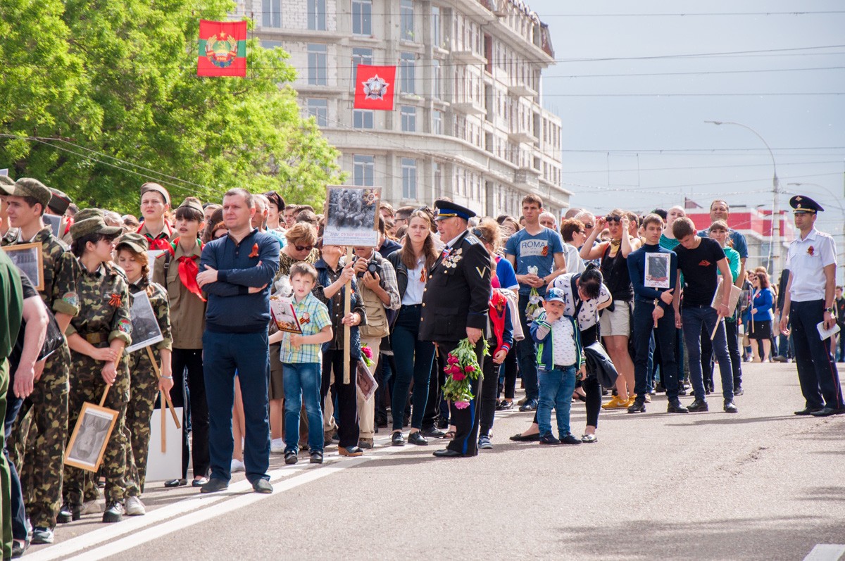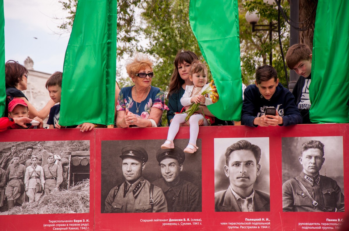 Вместе с ним в этой колонне были юнармейские отряды школьников, суворовцы, кадеты, курсанты военного института, российские военные, представители всех ветвей власти, общественные организации и тысячи тираспольчан. Под исполняемый хором «День Победы» они вспоминали историю победы своей семьи. Причём нередко этих историй было сразу несколько.