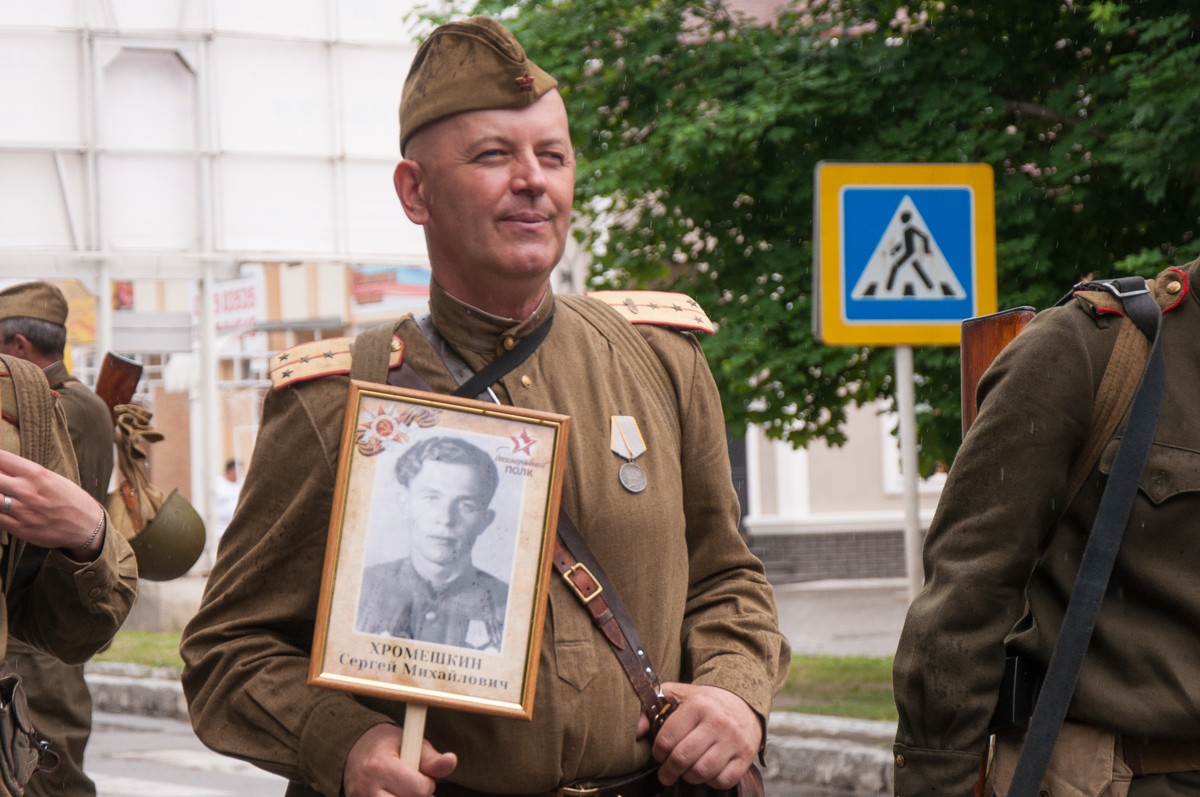 «У меня эмоций – выше крыши, такая гордость, что мой дед воевал, что я иду в этом полку. И такое странное чувство, как будто всех людей какая-то невидимая нить соединяет, что есть что-то общее у всех, кто идёт в этой колонне, чувство гордости, сопричастности. Очень хорошо, что это всё проводится, если бы у нас ещё было бы больше каких-то реконструкций исторических, было бы вообще всё замечательно», – делится он впечатлениями.