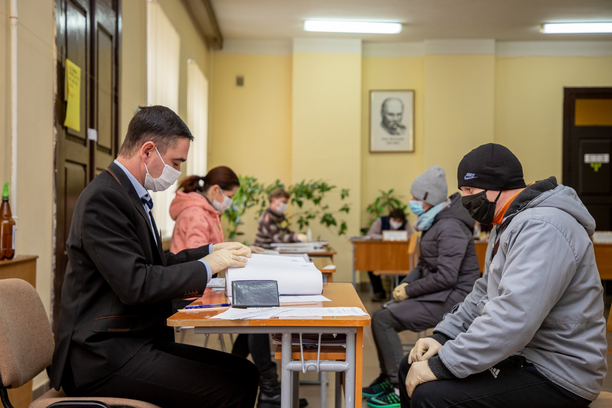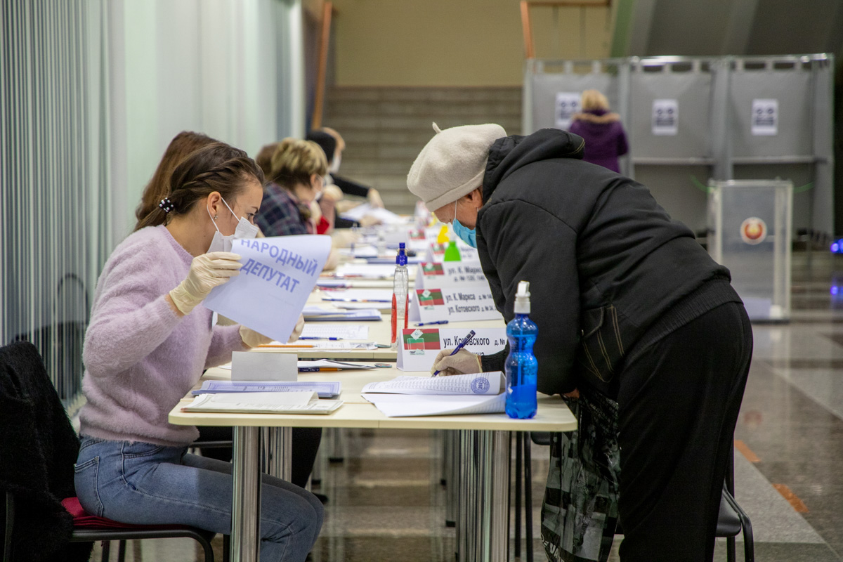 Из-за коронавируса голосование в этом году проходит по карантинным правилам. Граждане голосуют в масках, на каждом избирательном участке антисептик, рециркуляторы для обеззараживания воздуха. Необходимо также соблюдать дистанцию 1 метр, соответствующие ограничители уже расклеили.