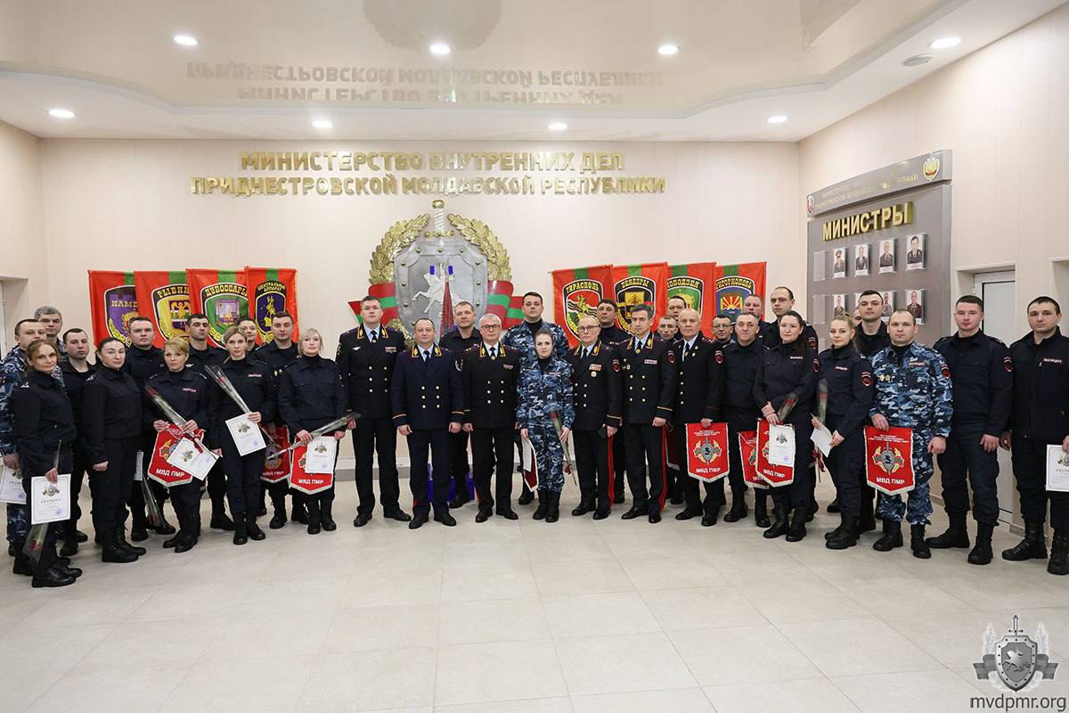 Тирасполь, 9 февраля. /Новости Приднестровья/. Экс-министр внутренних дел, заместитель председателя Правительства ПМР Виталий Нягу простился со знаменем МВД. Церемония прошла в актовом зале ведомства в рамках мероприятия, посвященного награждению лучших подразделений и сотрудников.
