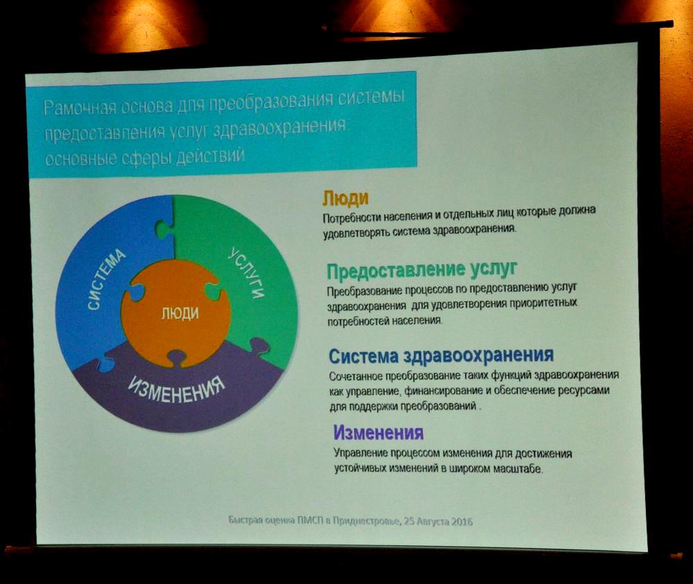 Сделанные на основании этих встреч выводы они озвучили на встрече в Министерстве здравоохранения, подчеркнув сильные стороны системы приднестровской системы здравоохранения, выделили слабые моменты, а также обозначили ряд рекомендаций. Эксперты ВОЗ отметили недостаточную вовлечённость медицинских сестер в процесс предоставления услуг на первичном уровне, в особенности для пациентов с неинфекционными заболеваниями и факторами риска.