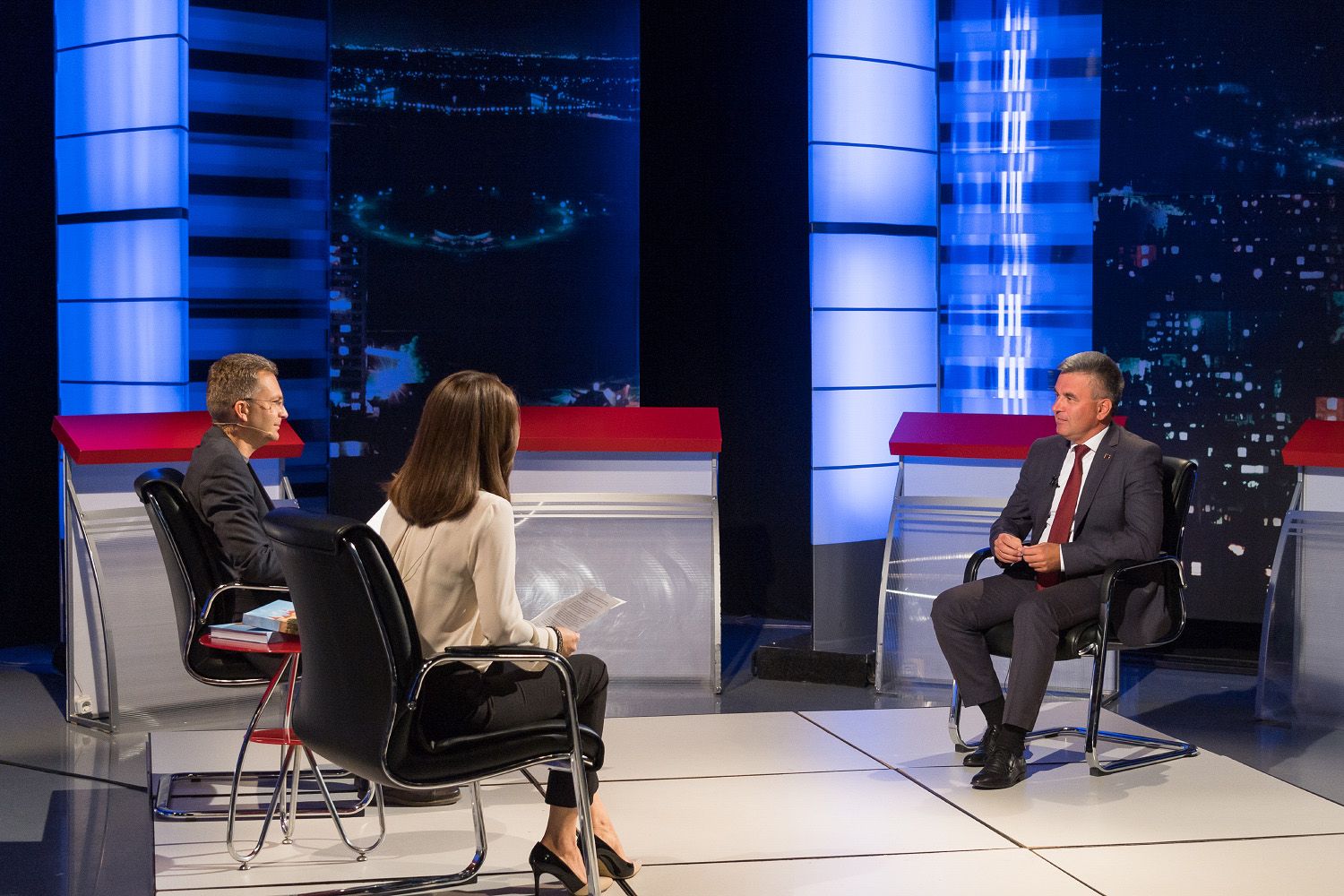 Вышедшую сегодня в эфир сорокаминутную беседу с руководителем страны вели Наталья Пильщикова и Константин Топалов. Говорили о любви к Родине в разных ее проявлениях, развитии государства, построении нового приднестровского общества. В свете последних событий особое внимание собеседники уделили Бендерской крепости и открытию Александро-Невского парка.
