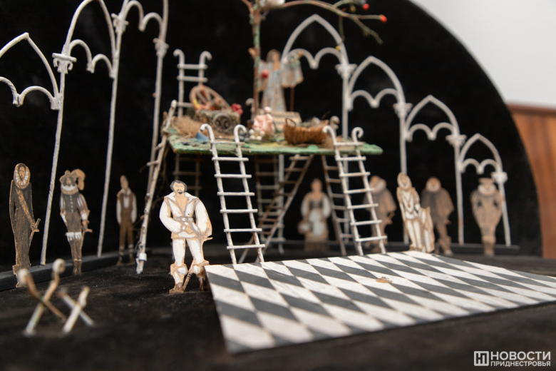 Основа экспозиции – сценография (театрально-декорационное искусство), в которой художник занимается оформлением спектакля и созданием его изобразительно-пластического образа, существующего в сценическом времени и пространстве. Работе художника в Приднестровском государственном театре драмы и комедии им. А.С. Аронецкой Леонид Пироженко отдал 25 лет.
