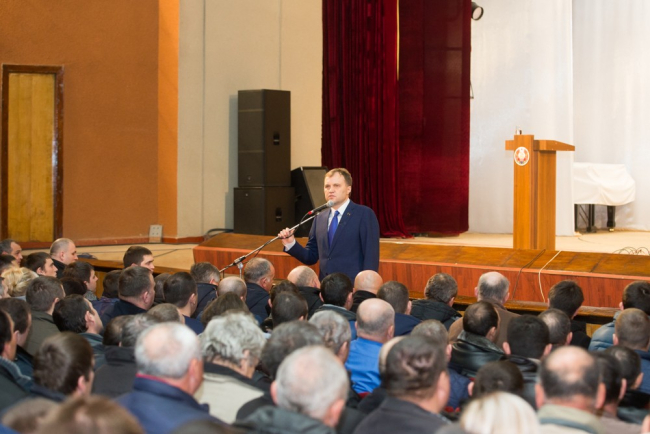 Рыбница, 28 ноября. /ИА «Новости Приднестровья"/. Глава государства Евгений Шевчук провёл встречу с трудовым коллективом ГУП «ЕРЭС» и работниками коммунальных служб Рыбницкого района. Как сообщает пресс-служба Президента, общение проходило в большом зале Дома культуры Рыбницы.