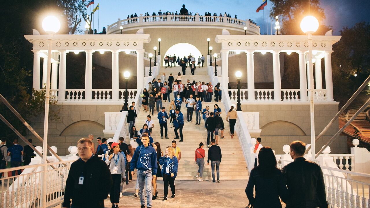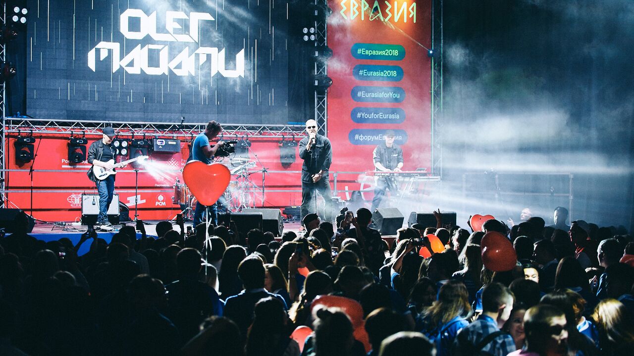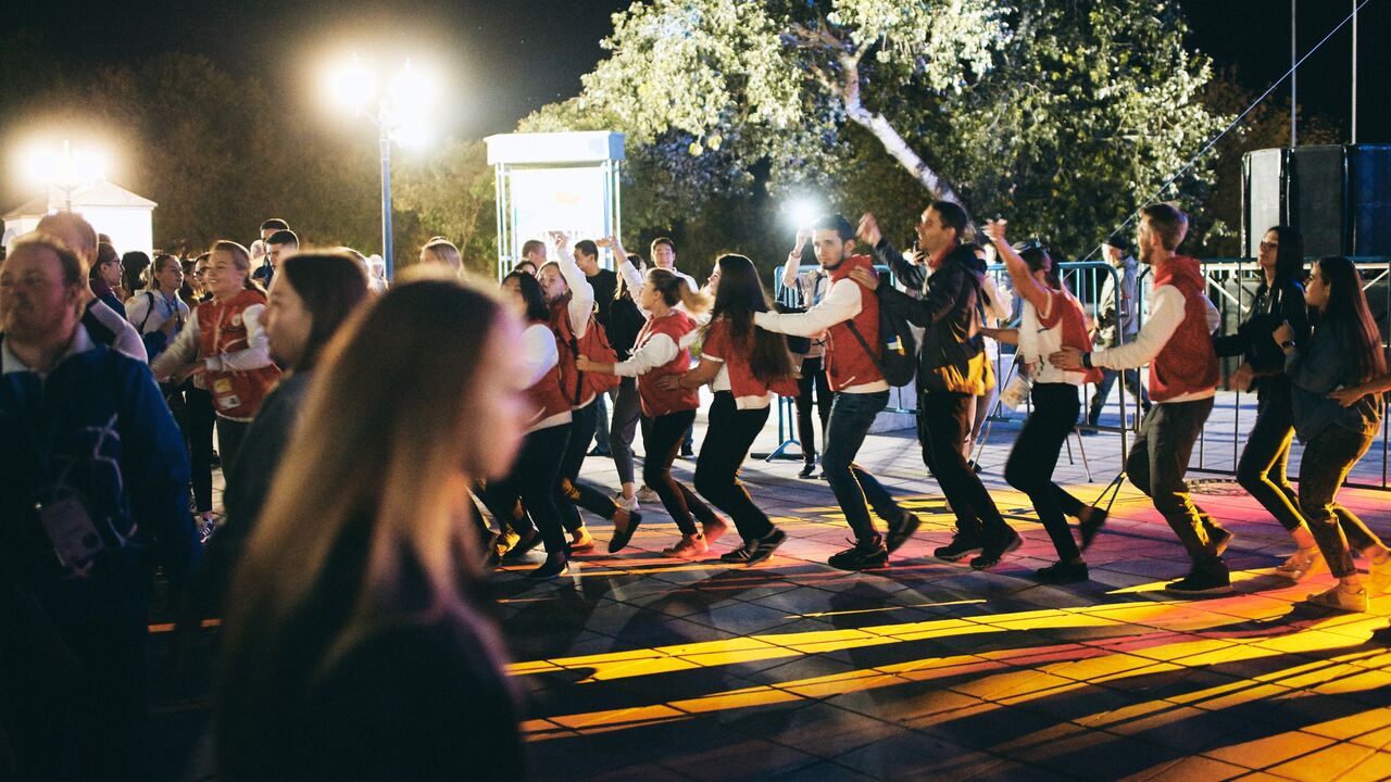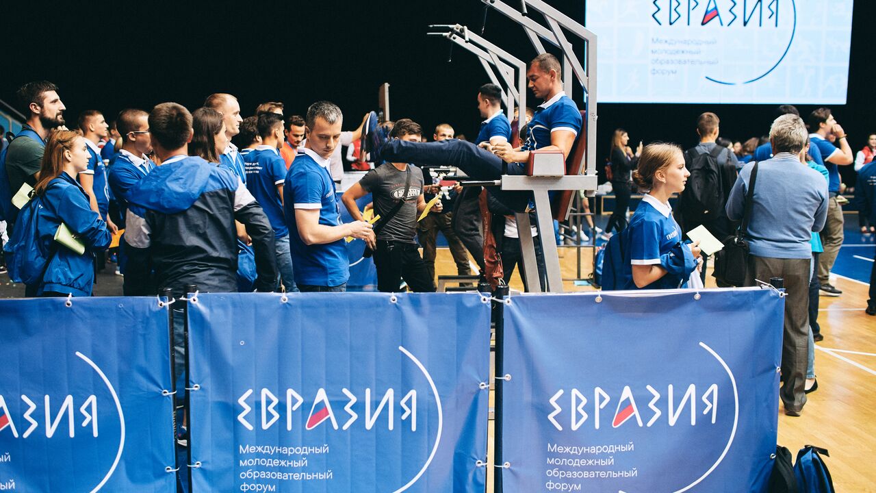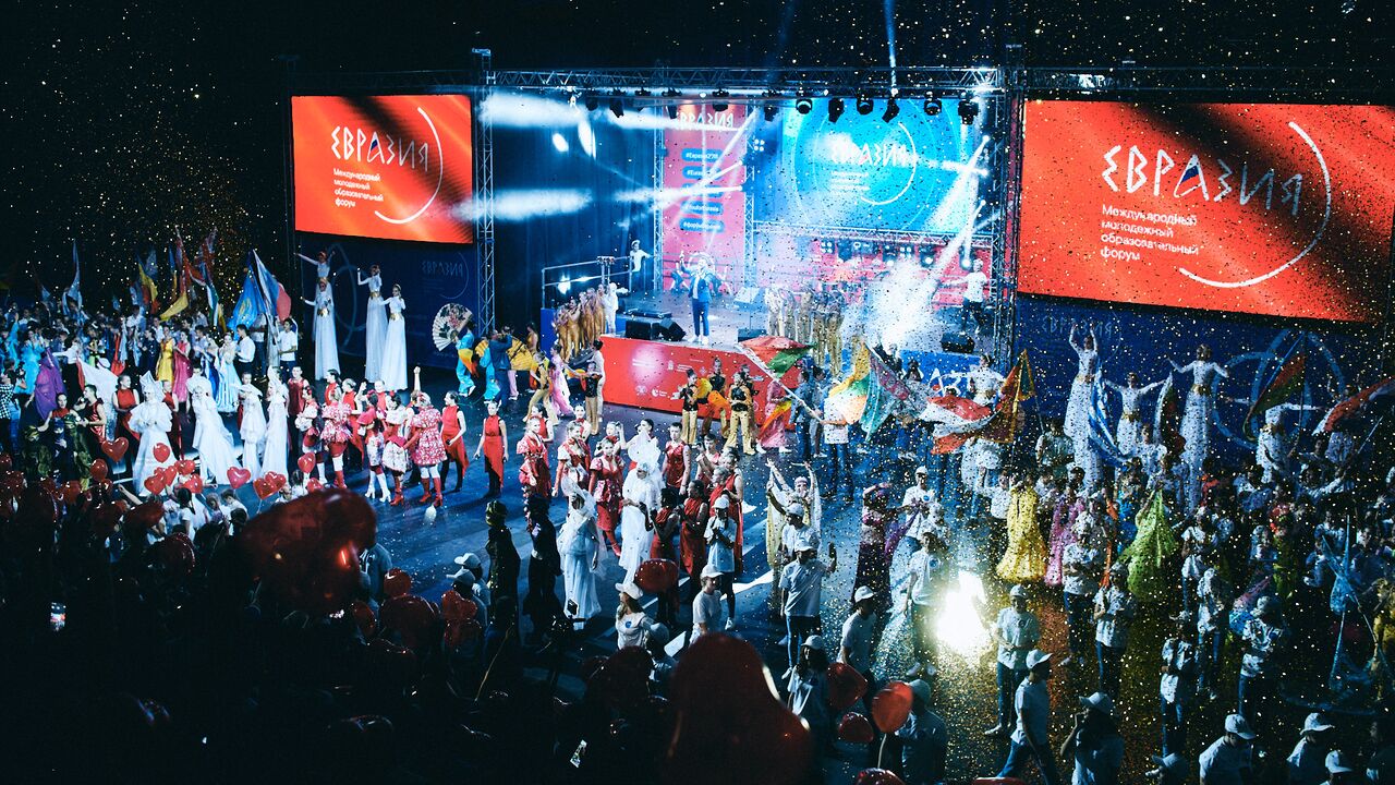 Уже вечером евразийцев ждало закрытие форума, по масштабам и энергии не уступающее старту проекта. Кто-то в строгих костюмах и нарядных платьях, кто-то в поло с символикой форума – 800 ребят съезжались к спорткомплексу «Олимпийский».