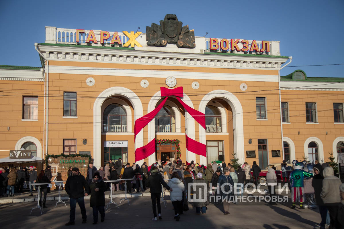 Тирасполь, 23 декабря. /Новости Приднестровья/. Столичный вокзал в эти дни был необычайно многолюден. Но посетители спешили не за билетами. Сегодня и завтра здесь проходит новогодняя ярмарка «Гараж». Само здание вокзала украсили большими красными лентами, а при входе под самым потолком завис дракон. Это и символ Нового года (по Восточному календарю), и отсылка ко вселенной Гарри Поттера.