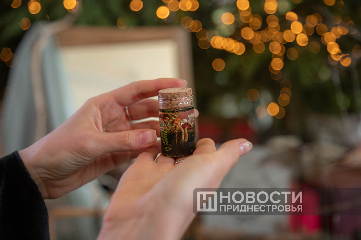 Екатерине Азбукиной ехать издалека надобности не было. Она из Тирасполя. Более 10 лет занимается украшениями – ищет миниатюрные подарки от природы и сохраняет их в ювелирной смоле. Кулоны, кольца, брошки и подвески – изделия штучные.