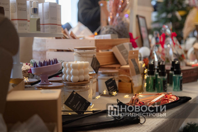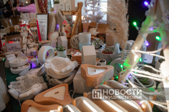 А вот во втором уже было больше хенд-мейда. Игрушки, косметика, подсвечники, одежда, хвойные новогодние букеты, сладости и горячие напитки. Показать себя и свои изделия пришли около 20 народных умельцев.