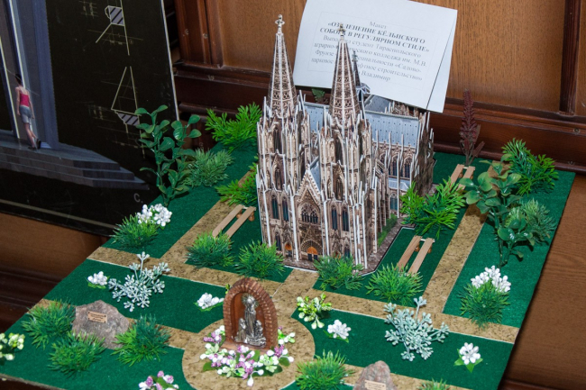 Как рассказал председатель Союза Владимир Галанин, в экспозиции представлены различные работы, начиная от проектов воздвигнутых жилых строений, памятников архитектуры, торговых знаков (лэйблов), заканчивая макетами, которые, возможно, в будущем будут претворены в жизнь.