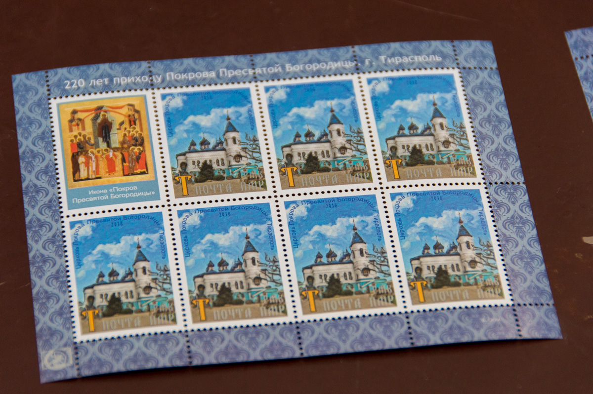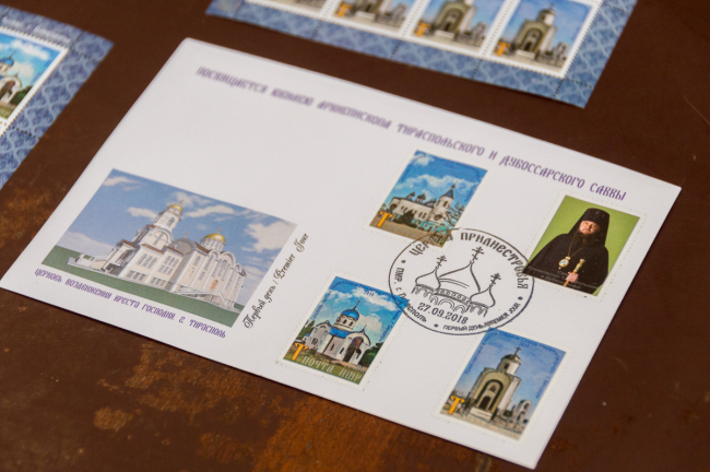 Тирасполь, 27 сентября. /Новости Приднестровья/. В столичном главпочтамте представили новый выпуск марок серии «Церкви Приднестровья». Презентацию приурочили к 60-летию Архиепископа Тираспольского и Дубоссарского Саввы, а потому её официальная часть презентации состоялась в Крестовоздвиженском храме, где владыка поставил первую печать спецгашения.