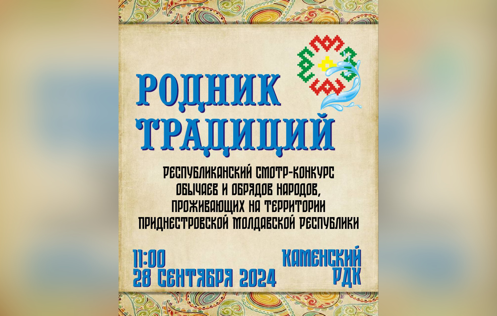Каменка, 24 сентября. /Новости Приднестровья/. Финал Республиканского конкурса обычаев и обрядов «Родник традиций» пройдет в Каменке 28 сентября, пишет каменская госадминистрация.