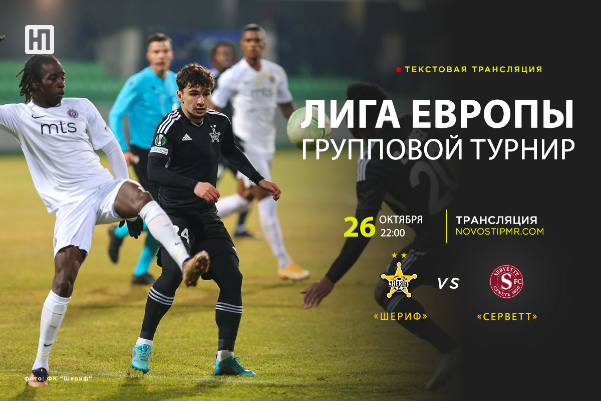 Тирасполь, 27 октября. /Новости Приднестровья/. Тираспольский футбольный клуб «Шериф» в третьем туре группового этапа Лиги Европы сыграл вничью со швейцарским «Серветтом». Игра на стадионе в Тирасполе завершилась со счетом 1:1.