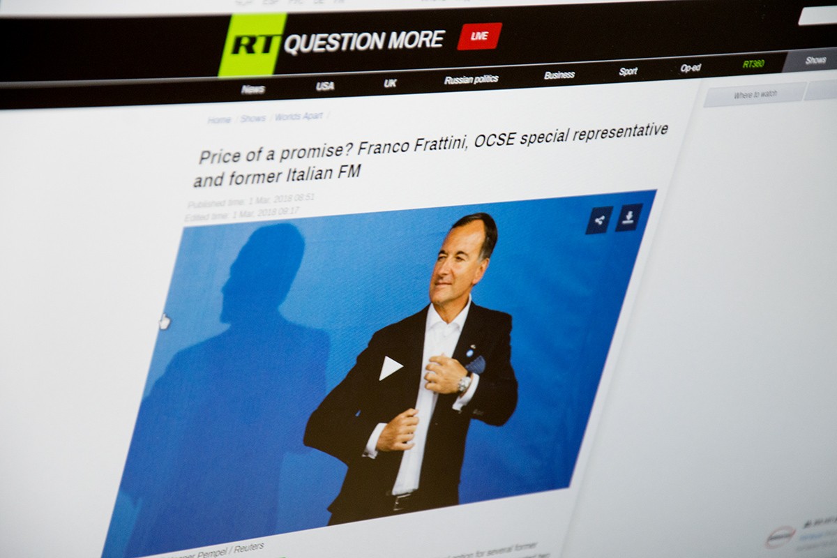 Возможность пообщаться с Франко Фраттини и взять у него эксклюзивное интервью не упустили журналисты российского международного многоязычного информационного телеканала «Russia Today». В течение получаса говорили о взаимоотношениях с Россией и Европой, о «политизации кишиневскими властями молдо-приднестровского конфликта для достижения своих внутриполитических целей», о сотрудничестве Италии с Россией в урегулировании конфликта, о российской миротворческой миссии на Днестре.