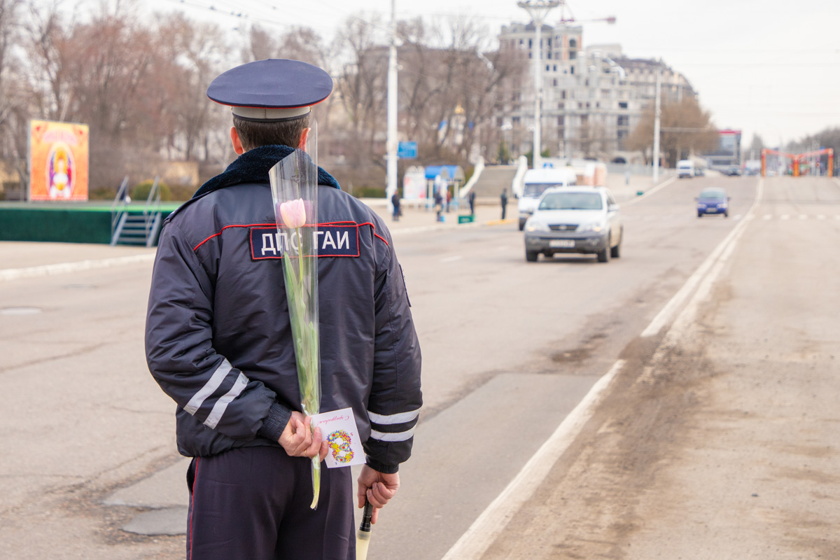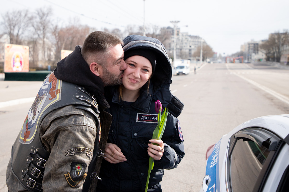 Тирасполь, 8 марта. /Новости Приднестровья/. В честь Международного женского дня в Тирасполе и Бендерах сегодня прошла совместная акция сотрудников Госавтоинспекции и членов мотоклуба «Гайдук». Представители сильной половины человечества в лице сотрудников ГАИ и байкеров этим праздничным мартовским утром радовали представительниц прекрасной половины человечества, даря им цветы и позитивные эмоции.