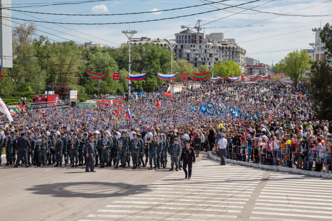 В 8:00 сбор участников акции «Бессмертный полк» у ГДК. В 8:30 начинается движение колонны в сторону площади Защитников ПМР, где в 9:00 начнётся митинг.