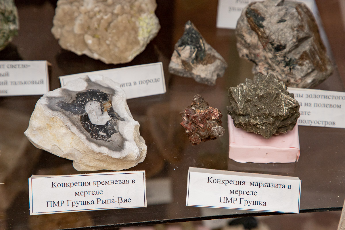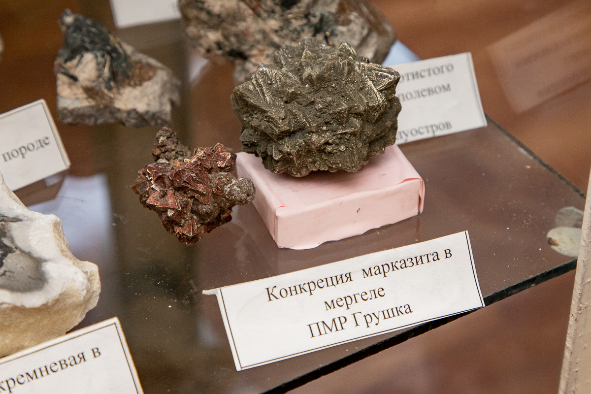 Осадочный минерал марказит, состоящий из сернистого железа, был найден в селе Грушка Каменского района. Внешним видом он напоминает ёжика. Отличить марказит от других минералов можно по металлическому блеску, по большой твердости, по светлому латунно-желтому цвету. По мнению заведующей музеем, этим породам около 100 миллионов лет.