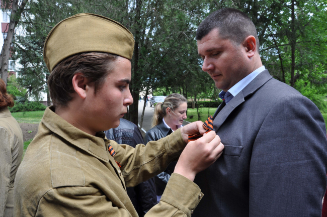 Память погибших воинов в Великой Отечественной войне почтили минутой молчания, после чего возложили цветы к мемориальным плитам. Затем участники акции прикалывали черно-оранжевую ленту всем горожанам, напоминая о её значении. Всего было роздано более 300 лент.