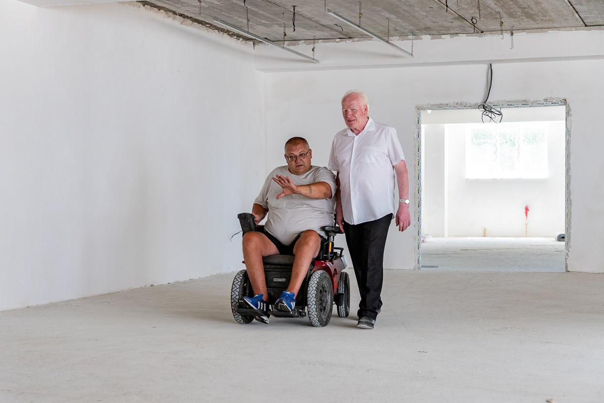 Здание хоть и не было построено специально под центр, сейчас под него адаптировано полностью. Чтобы не переделывать потом, помещения и пространства между ними изначально обустраивали с учётом людей с ограниченными возможностями. Причём это касается не только колясочников, но и незрячих, глухих. Будущих посетителей центра регулярно приглашали во время строительства, чтобы отрегулировать угол наклона пандуса, решить, в какую сторону лучше открывать дверь и каким должен был зазор между уровнями пола.