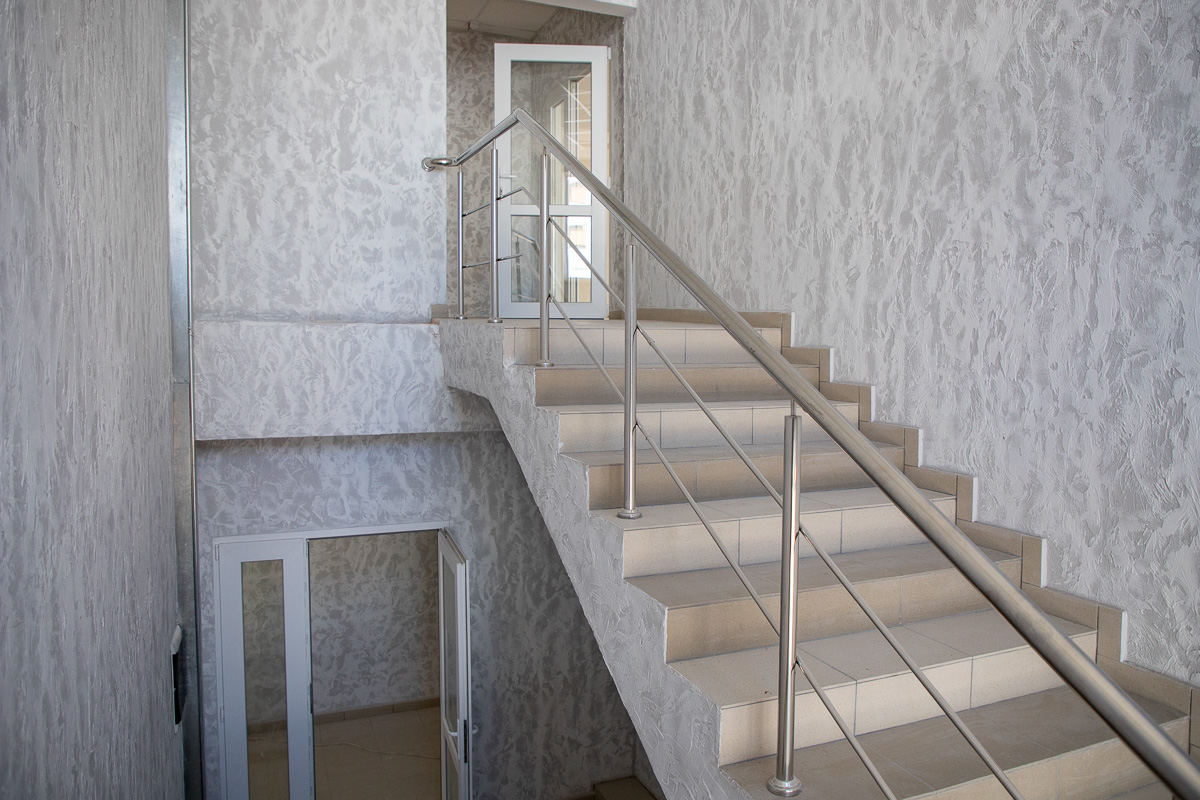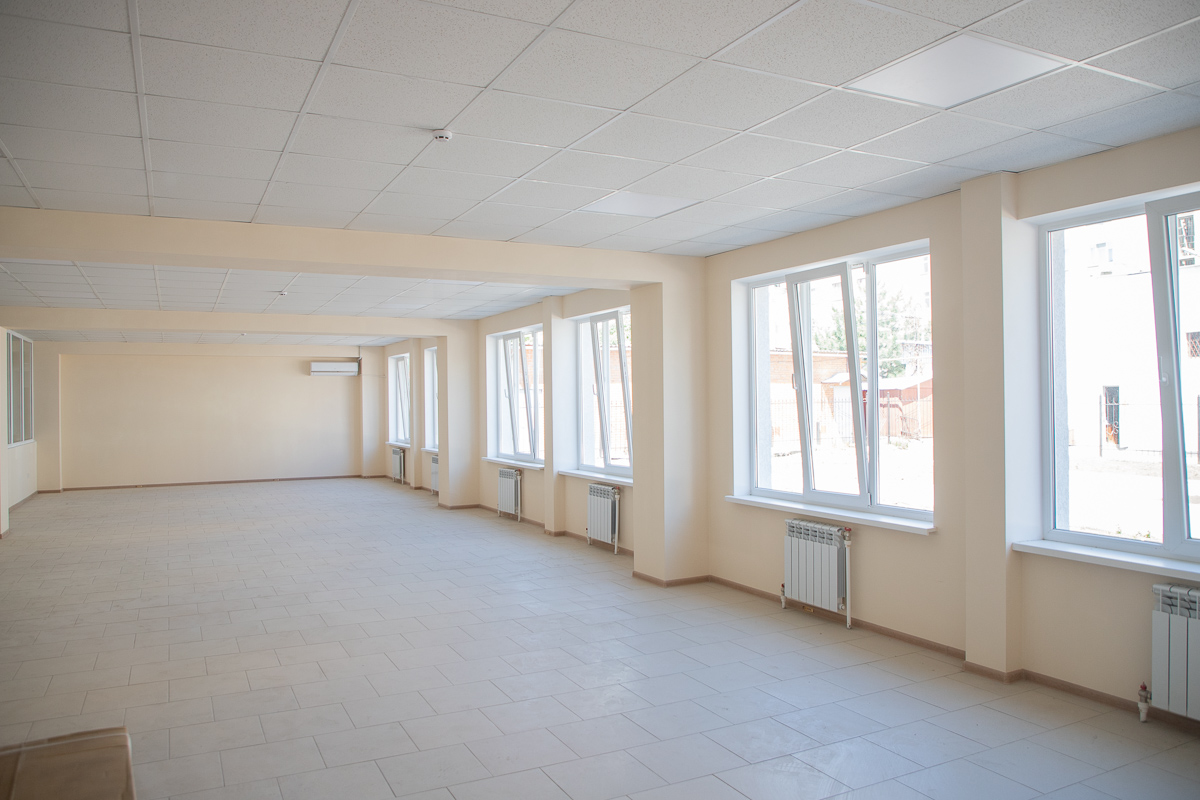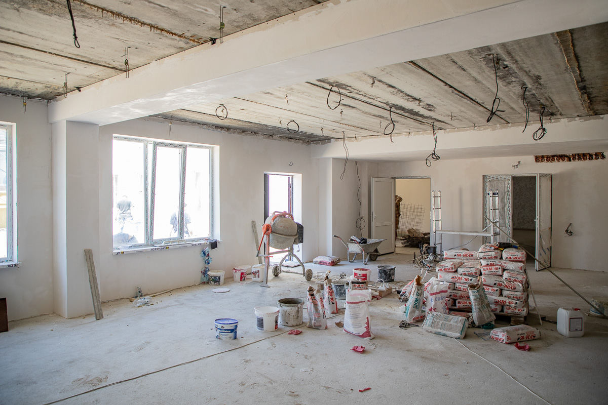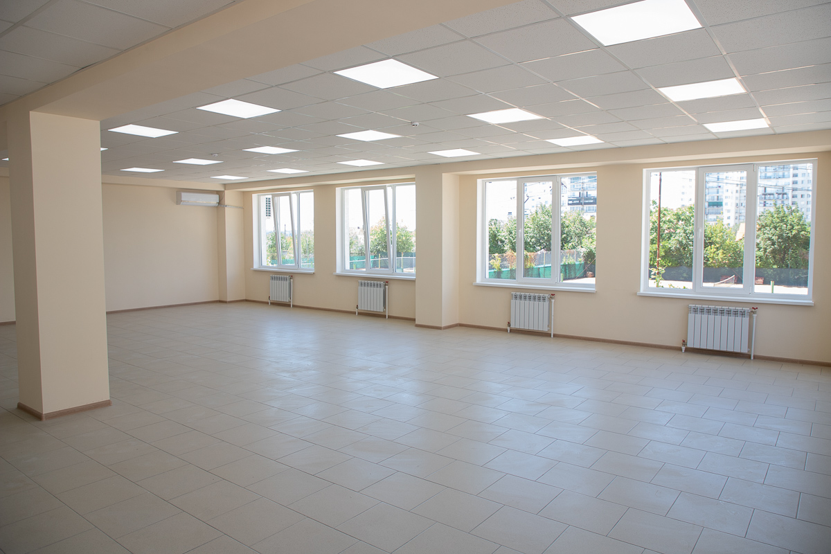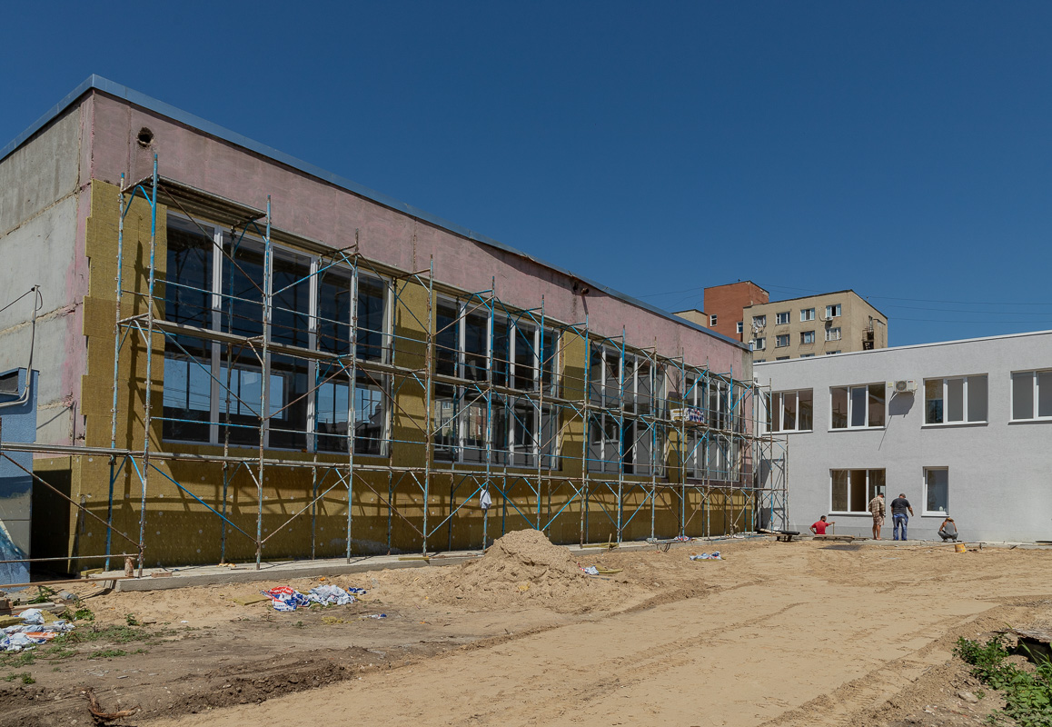 «Первым делом сделали кровлю над всеми корпусами, потом простенки. В прошлом году уже начали делать фасад главного здания, декоративную отделку стен, двери, окна, провели коммуникации. Сейчас остались только потолки, покраска стен и укладка полов. У нас полностью безбарьерная среда: двери без порогов, расширенные проёмы, два пандуса на входе - один для въезда, другой для выезда. Ещё один будет на выходе из большого спортзала. Все санузлы и душевые адаптированы под людей с инвалидностью», – рассказал директор строительной компании «Союзинвест» Евгений Друзенко.