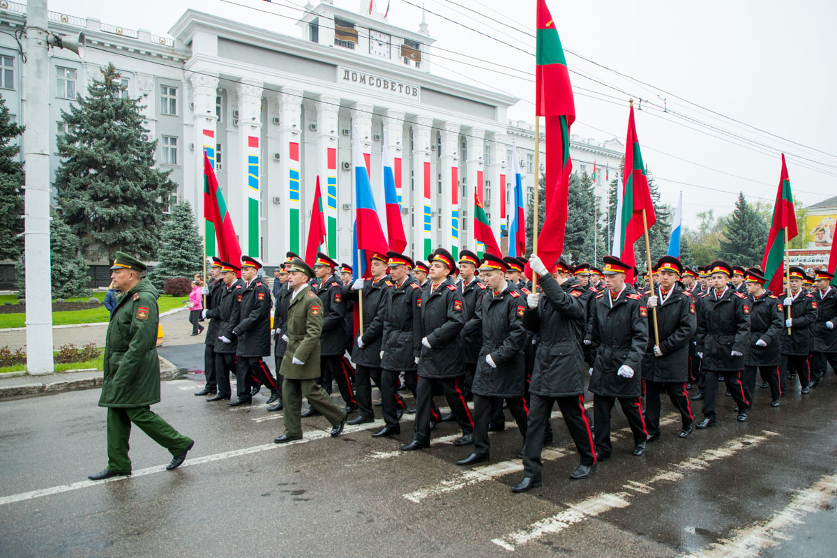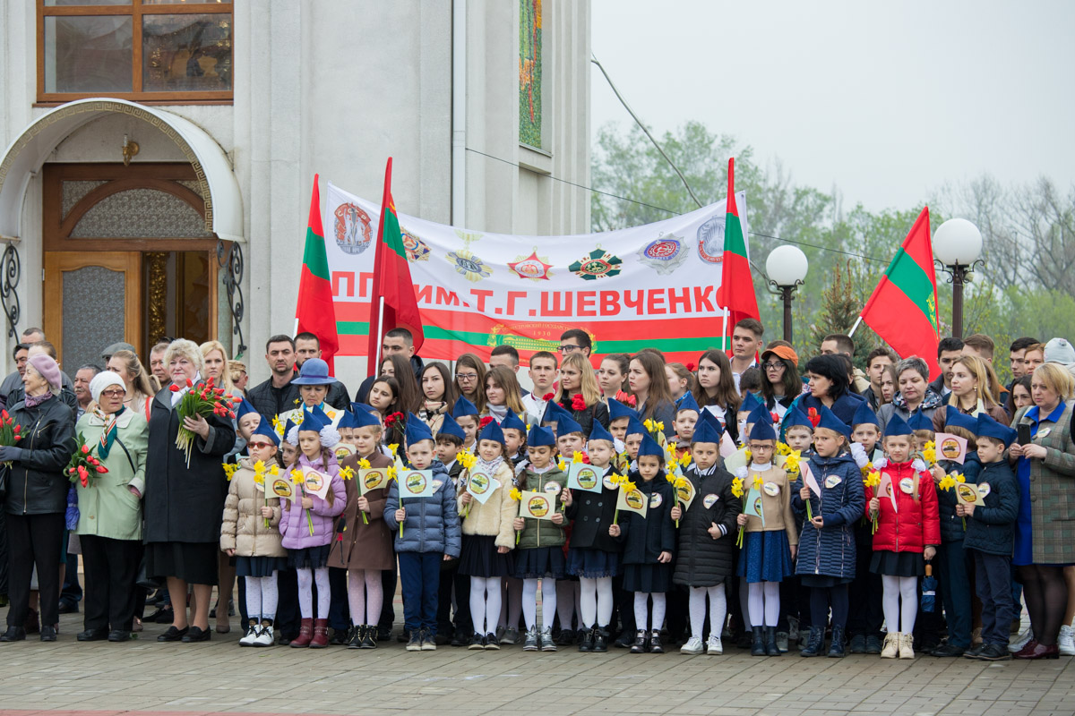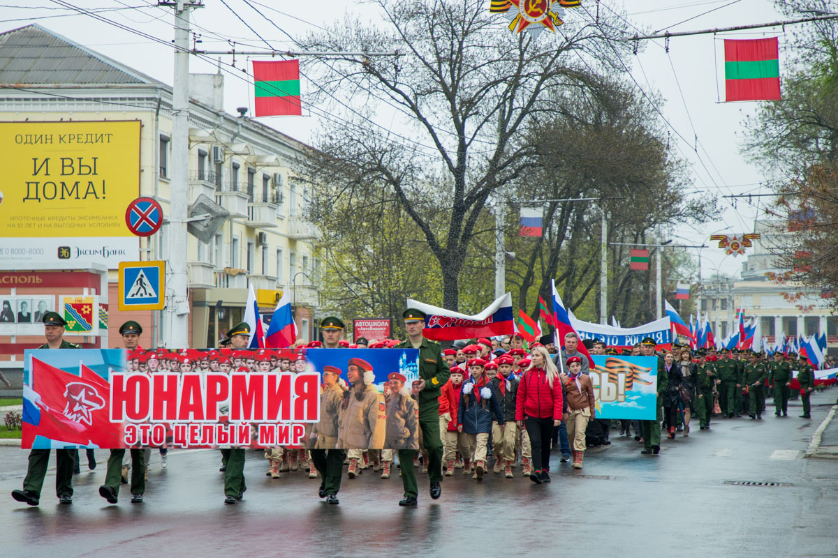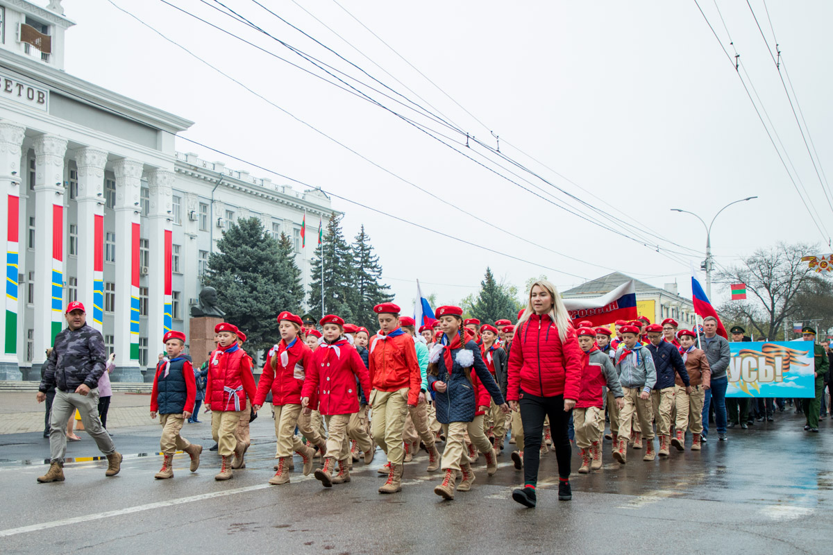 Вместе с тираспольчанами в колонне шествовали Президент ПМР Вадим Красносельский, вице-премьер Станислав Касап, вице-спикер Верховного Совета Галина Антюфеева, первый президент Игорь Смирнов, Полномочный Посол РФ в РМ Олег Васнецов, руководство Тирасполя, представители органов власти республики.