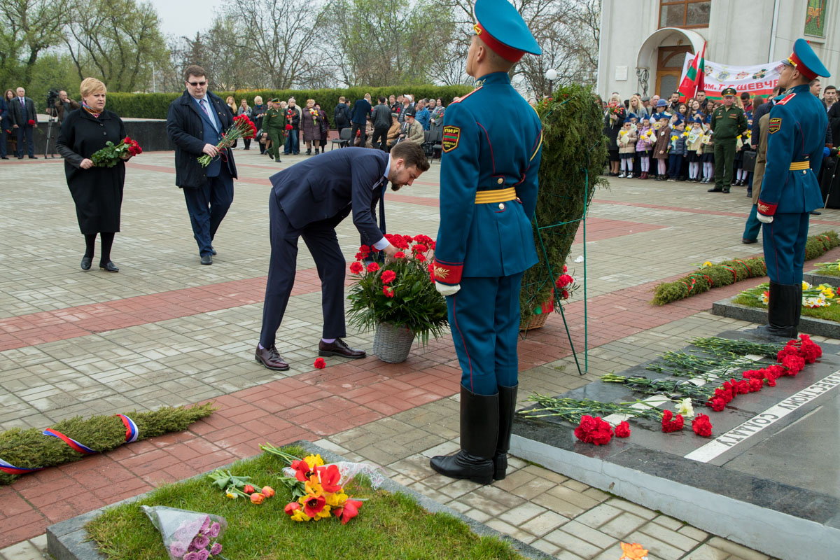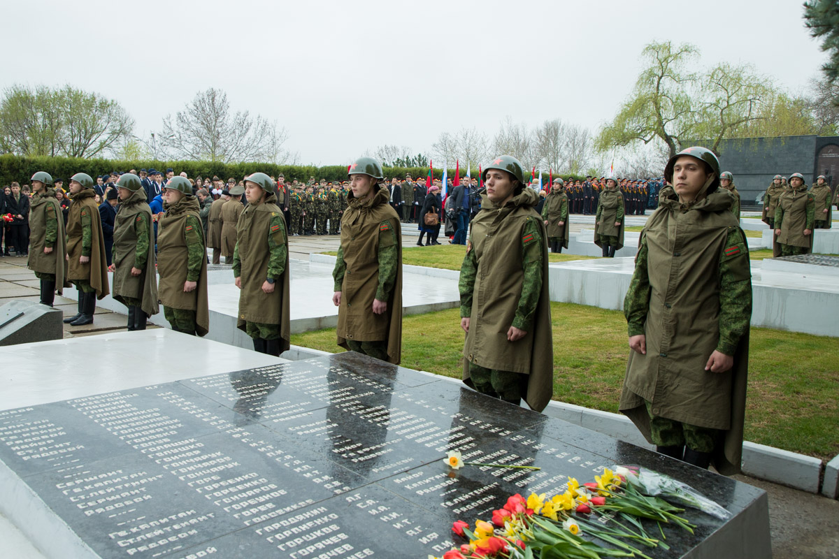 В память о тех, кто не дожил до сегодняшнего дня, – минута молчания. Венок к Вечному огню и цветы к могилам бойцов и офицеров, погибших при освобождении Тирасполя, возложил Президент, представители органов власти, руководители и офицеры Оперативной группы российских войск, жители и гости столицы.