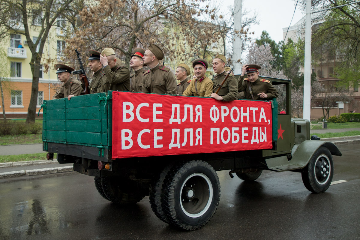 Возглавляли колонну приднестровские и российские военнослужащие в сопровождении оркестра Главного штаба Министерства обороны. Следом двигались стилизованный под «полуторку» грузовик и автомобили с ветеранами Великой Отечественной войны.  В арьергарде шли наследники Победы: молодые люди в полевой экипировке эпохи ВОВ, суворовцы, юнармейцы, школьники, молодежные и общественные организации.