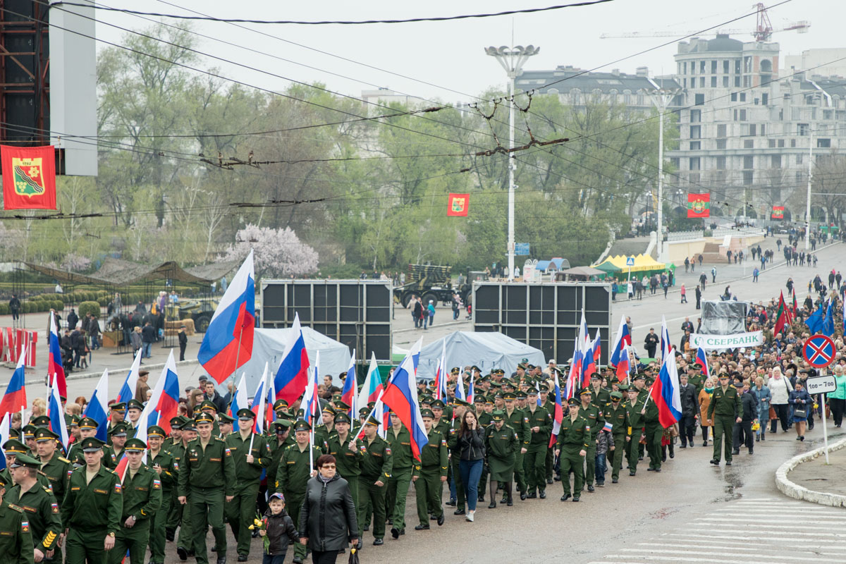 Тирасполь, 12 апреля. /Новости Приднестровья/. Сотни приднестровцев в ознаменование «Весны освобождения» прошли в едином строю по центральной улице Тирасполя. Шествие началось от Театральной площади. Именно здесь ровно 75 лет назад над зданием театра рядовой Мамедов водрузил Красное знамя.