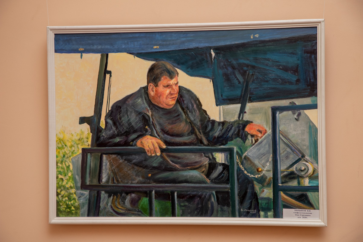 «Это случилось после разговора с иностранцем на одной из моих выставок. Увидев картину, на которой был запечатлён рабочий дорожной отрасли, он сказал: "У нас люди в оранжевых жилетах бастуют, жгут покрышки, а ваши настроены на созидание". Его слова запали в душу, и теперь посредством своих работ показываю каждодневный труд простых людей», - рассказал художник.