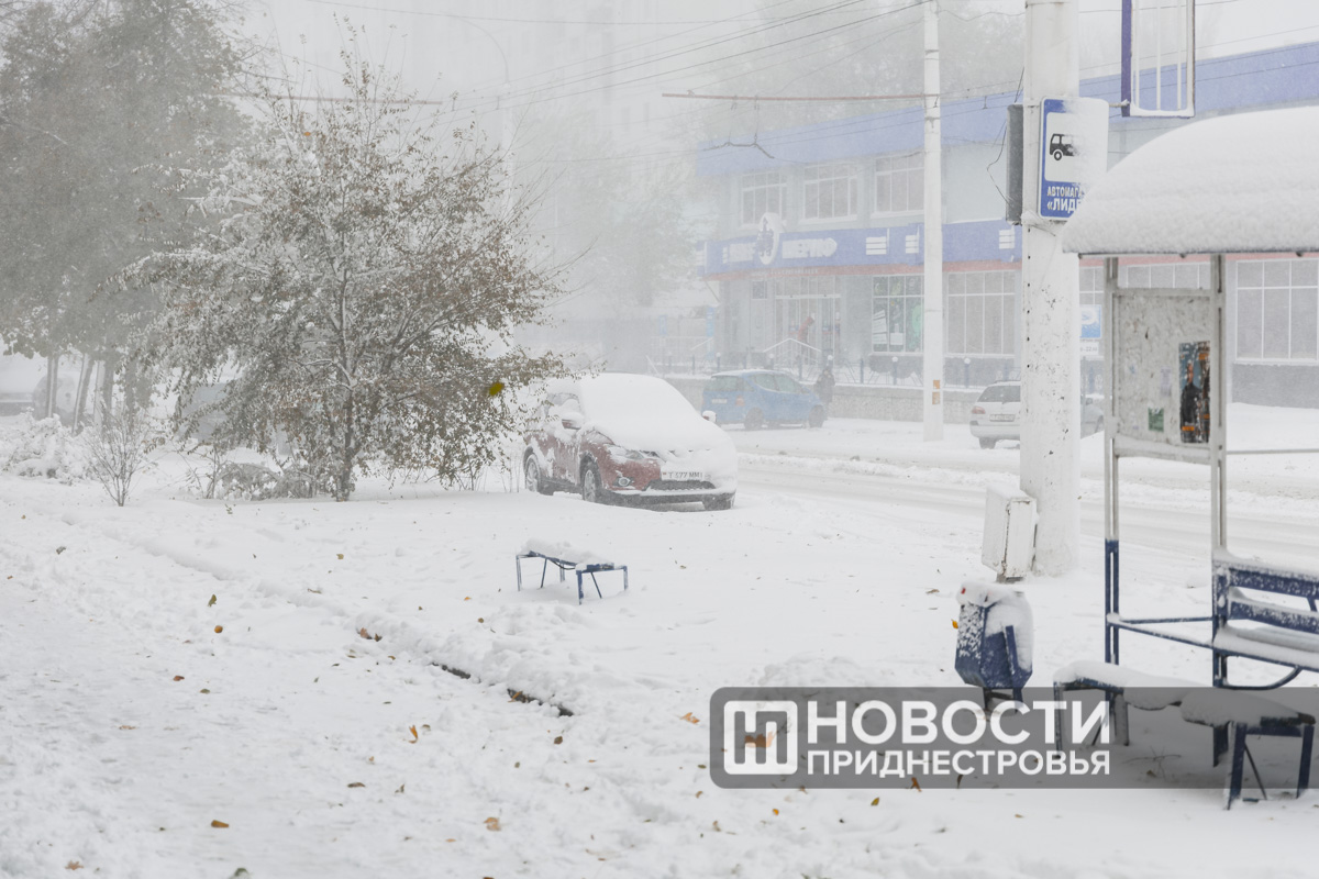 Как и прогнозировалось, сейчас на приднестровскую погоду оказывает влияние южный циклон. Он принёс с собой мокрый снег и сильный ветер.
