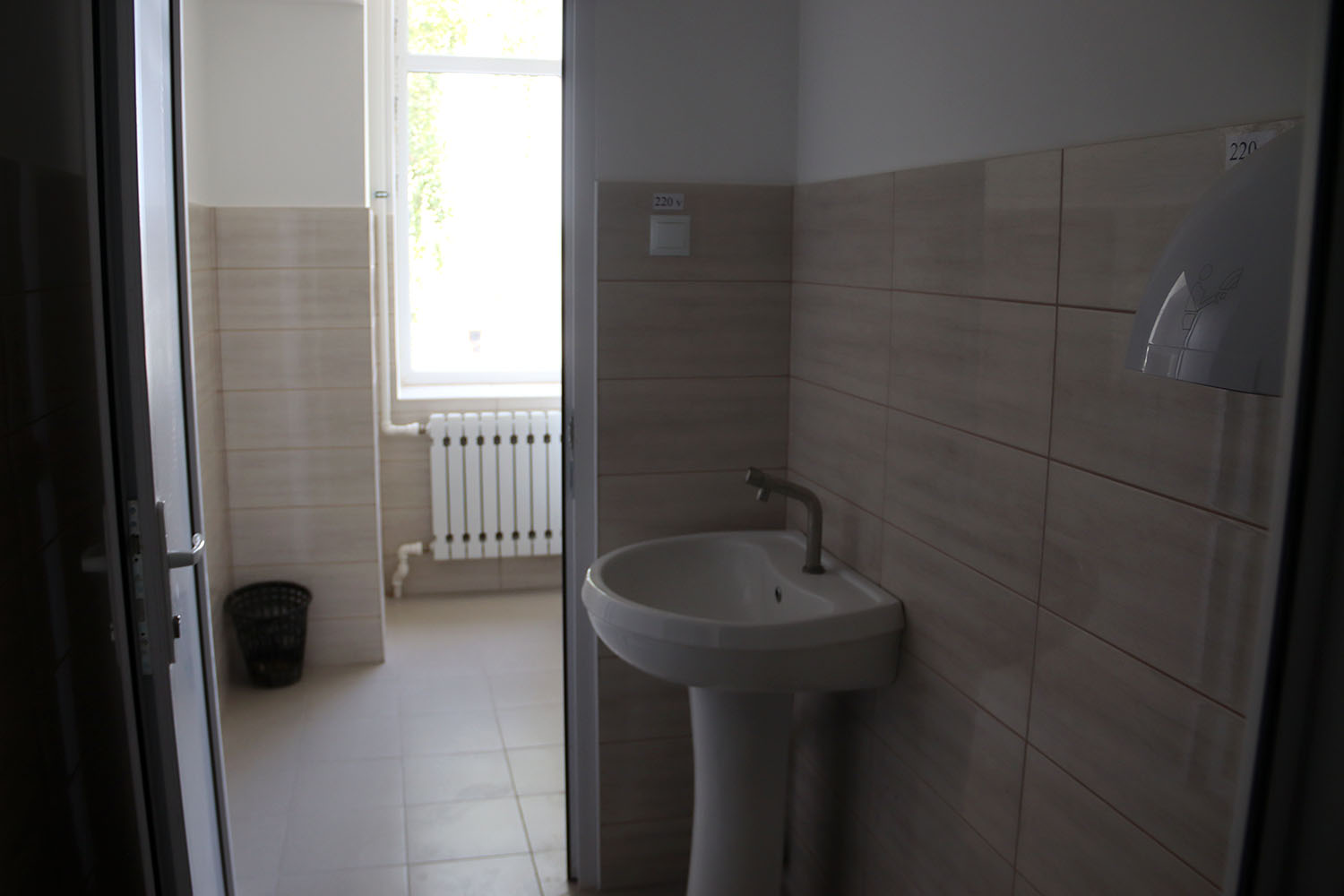 Капитальный ремонт санузлов в этом учебном заведении проводится впервые. Здание школы было введено в эксплуатацию в 1966 году.
