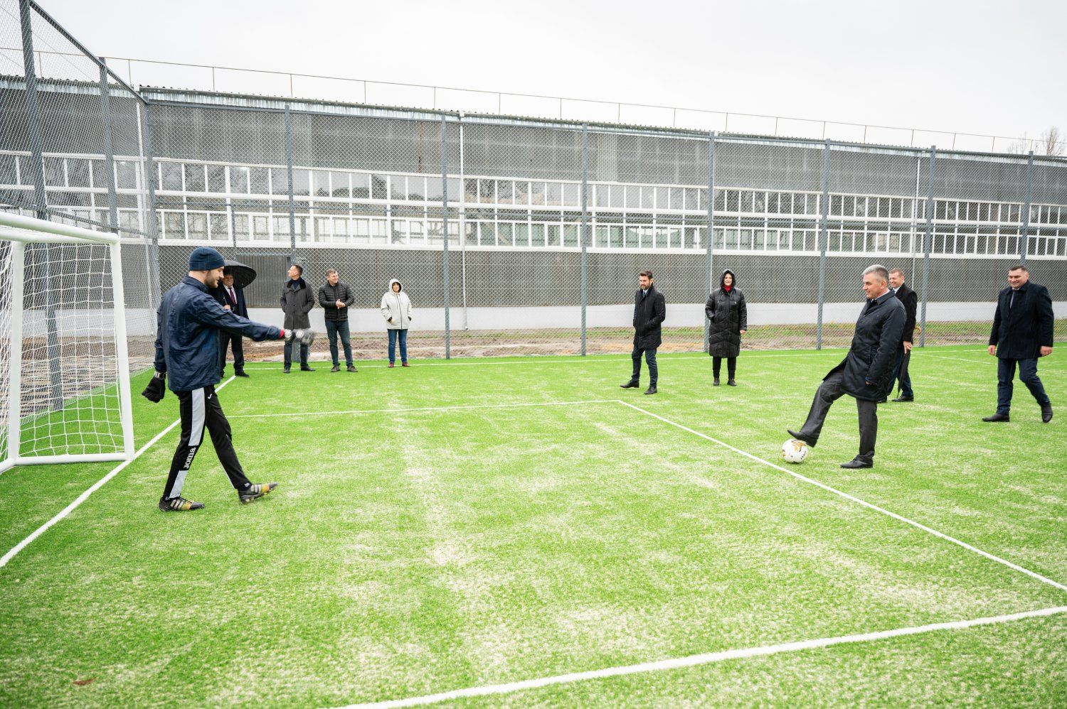 Рыбница, 17 ноября. /Новости Приднестровья/. Глава государства Вадим Красносельский побывал с рабочим визитом в Рыбнице, где посетил спорткомплекс «Юбилейный». В этом году здесь появилось мини-футбольное поле. Строительные работы проводили на средства Фонда капвложений. Уже выполнен монтаж искусственного покрытия. Кроме того, установлены металлические ограждения и скамейки. Сейчас идут работы по замощению тротуарной плиткой дорожек спорткомплекса, говорится в сообщении президентской пресс-службы.