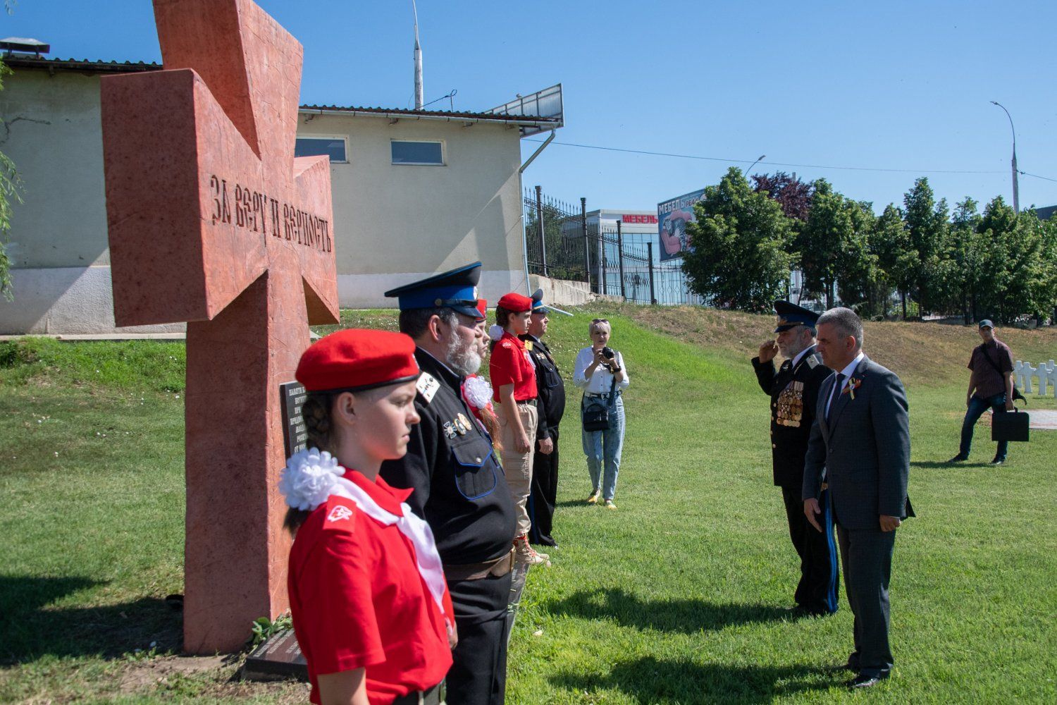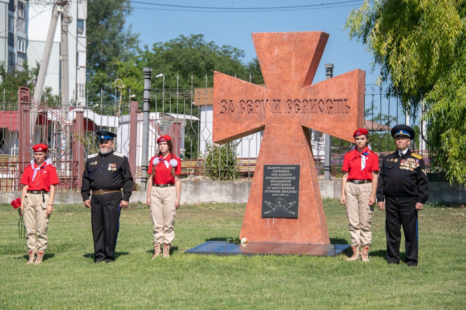 Памятник с символичной надписью «За веру и верность» возвели на территории бендерского некрополя в 2020 году. Информационная плита говорит о том, что крест установлен в память о казаках, погибших при защите Приднестровской Молдавской Республики от вооруженной агрессии Молдовы. У значимого для каждого казака объекта Вадима Красносельского приветствовали представители приднестровского казачества во главе с атаманом ЧКВ Игорем Небейголова.