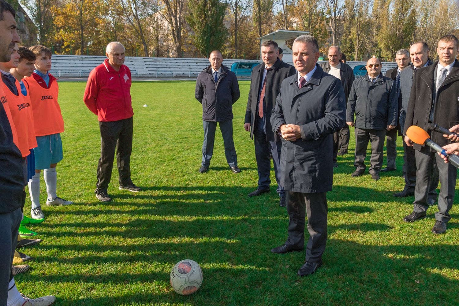 Рыбница, 1 ноября. /Новости Приднестровья/. Находясь с рабочим визитом на севере республики, Президент ПМР Вадим Красносельский побывал на городском стадионе Рыбницы, который входит в состав спорткомплекса «Юбилейный», сообщает президентская пресс-служба. В эксплуатацию стадион был сдан в 1975 году и вмещает 5 тысяч человек. Глава государства сегодня пообщался с футболистами местной команды «Искра», которая является чемпионом Приднестровья.