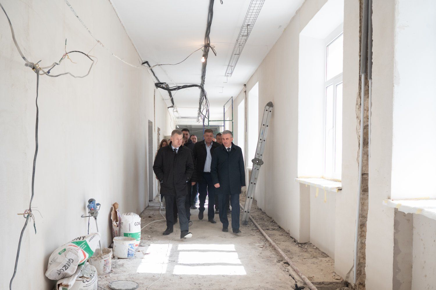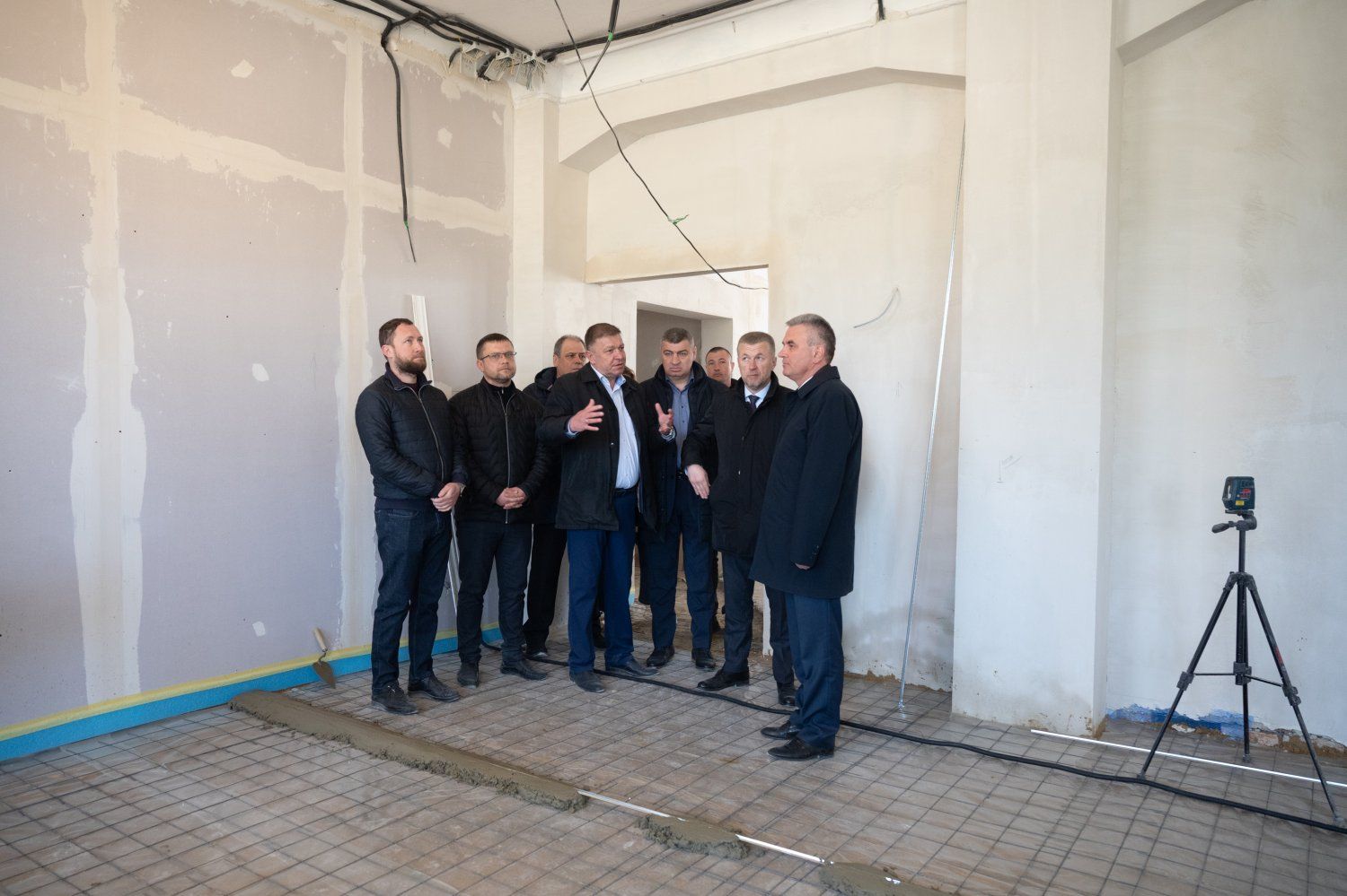 Внимание главы государства привлекли лестничные пролеты напротив центрального входа и пока еще пустующие полотна стен между этажами. Участники выездного совещания обсудили варианты их заполнения. Возможно, одну из ниш заполнит карта Приднестровья и герб ПМР, другую украсит изображение основателя Тирасполя Александра Суворова и городской герб.