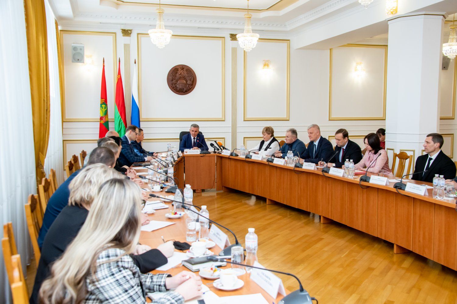 Тирасполь, 12 апреля. /Новости Приднестровья/. Глава приднестровского государства продолжает практику проведения встреч с общественностью, сообщает президентская пресс-служба. Сегодня за дискуссионным столом в Доме официальных приемов Администрации Президента ПМР собрались представители общественных организаций и экспертного сообщества республики. Собеседники главы государства: руководители АНО «Совет молодых дипломатов», РОО «Союз журналистов Приднестровья», НП «Агентство регионального развития», Общественной палаты ПМР, ОНФ, Коллегии адвокатов Приднестровья, молодежного спортивно-патриотического клуба «Наследники Побед» и других объединений. К разговору также приглашены руководитель Администрации Президента ПМР Сергей Белоус, заместитель председателя Верховного Совета ПМР Галина Антюфеева и министр иностранных дел ПМР Виталий Игнатьев.