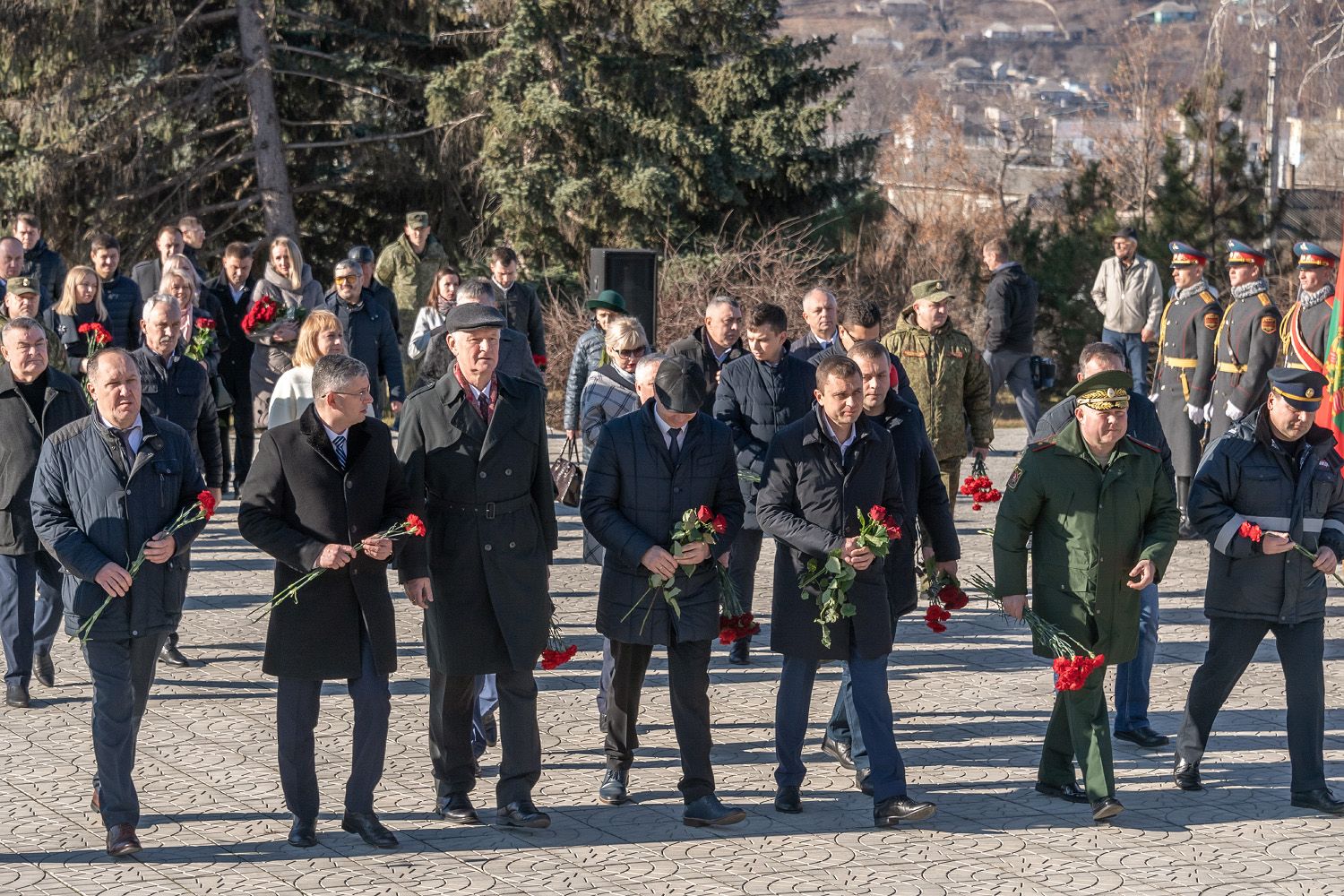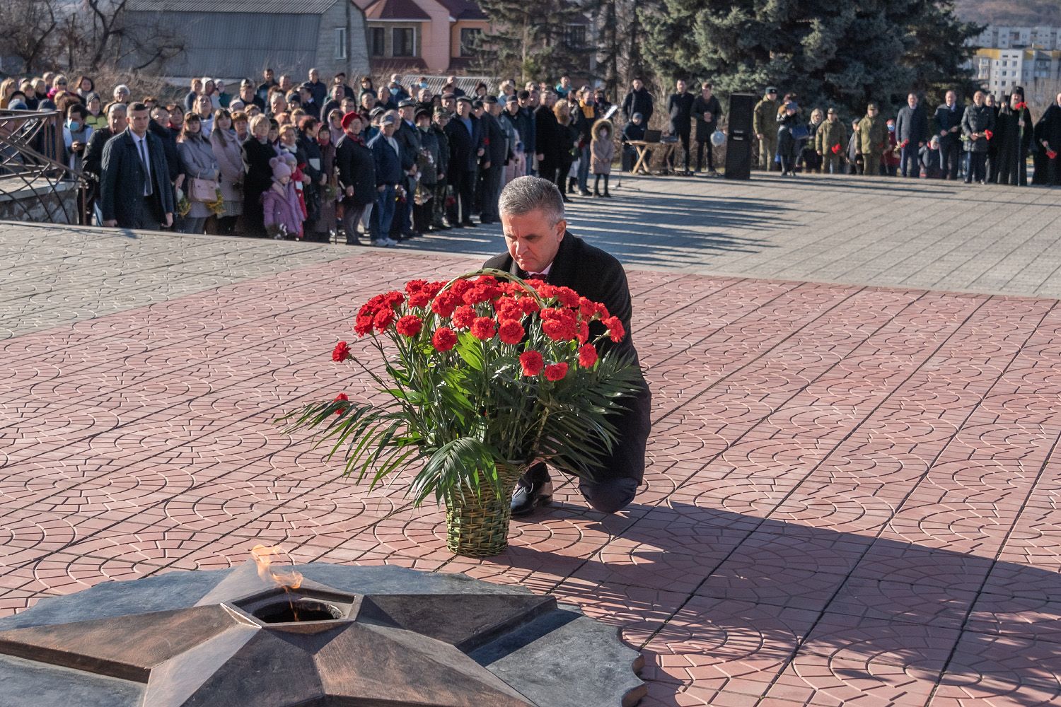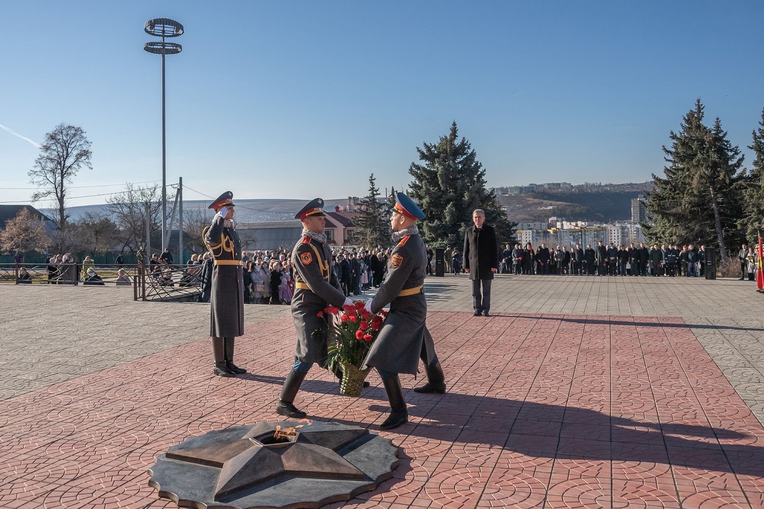 Рыбница, 21 ноября. /Новости Приднестровья/. На Мемориале воинской славы Рыбницы прошла церемония возложения цветов. Руководство республики и города, представители органов государственной власти и местного управления, общественности, духовенства, жители и гости Рыбницы почтили память погибших защитников минутой молчания. К Вечному огню, а также к памятникам Защитникам Отечества и ликвидаторам аварии на Чернобыльской АЭС возложили цветы, сообщает пресс-служба главы государства.