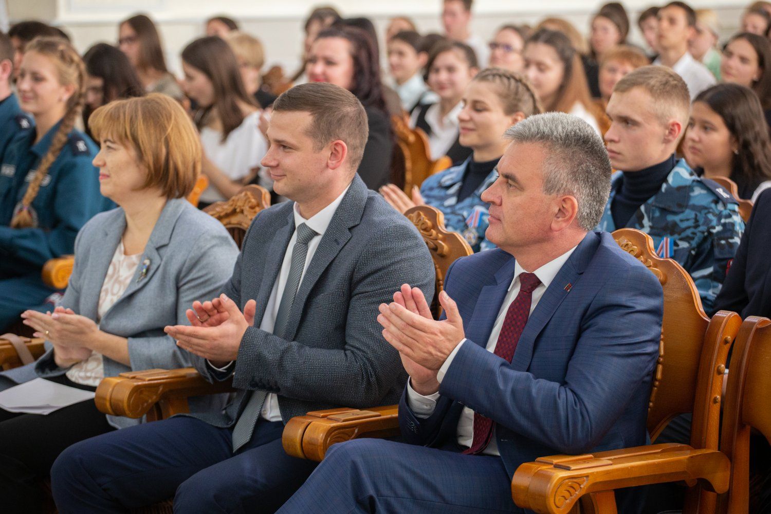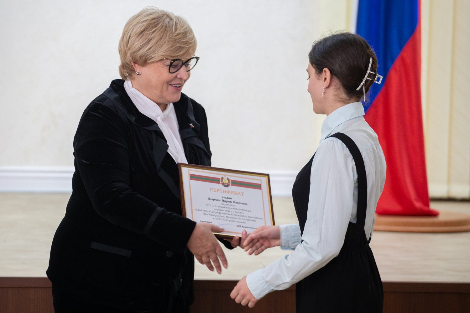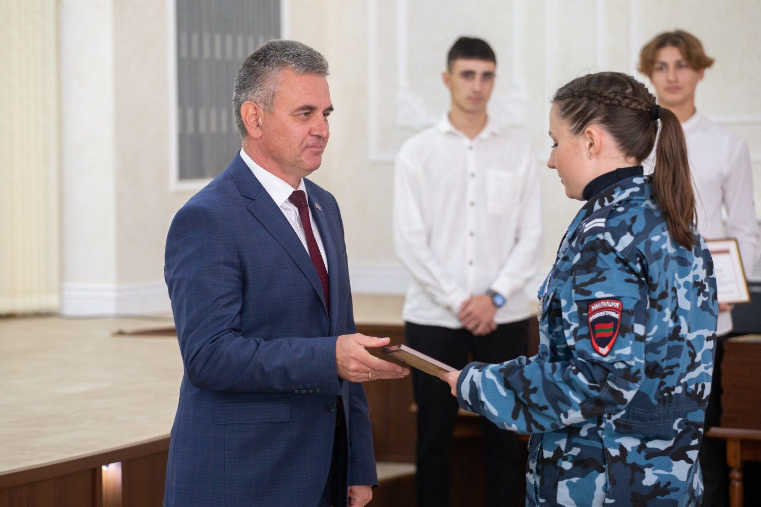На торжественной церемонии, которая прошла в малом зале Дворца Республики, стипендиатов приветствовал Президент ПМР Вадим Красносельский.