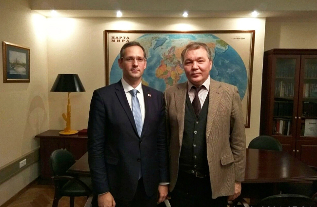 Тирасполь, 29 ноября. /ИА «Новости Приднестровья»/. В рамках рабочего визита в столицу Российской Федерации Министр иностранных дел ПМР Виталий Игнатьев встретился с Председателем Комитета Государственной Думы РФ по делам Содружества Независимых Государств, еразийской интеграции и связям с соотечественниками Леонидом Калашниковым, сообщает пресс-служба МИД ПМР.