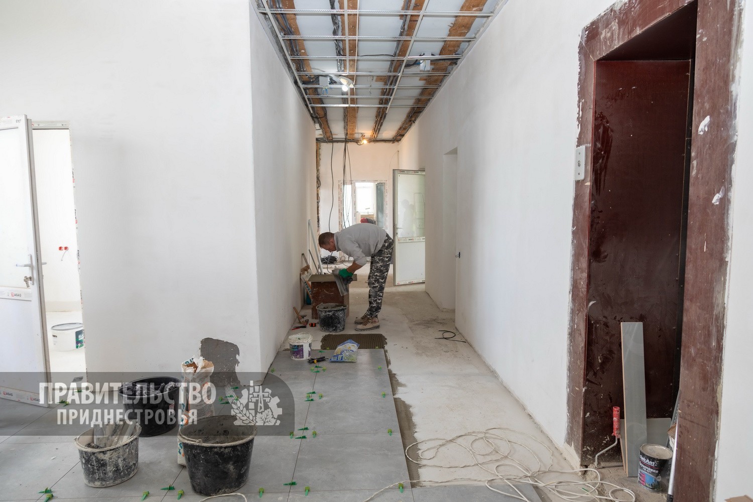 С конца 2023 года ремонтные работы переместились внутрь здания. На третьем этаже завершены основные мероприятия: установлены новые дверные блоки, проложены системы электроснабжения и вентиляции, идет отделка кабинетов, процедурных и санитарных узлов. Готовность этажа составляет порядка 95%.