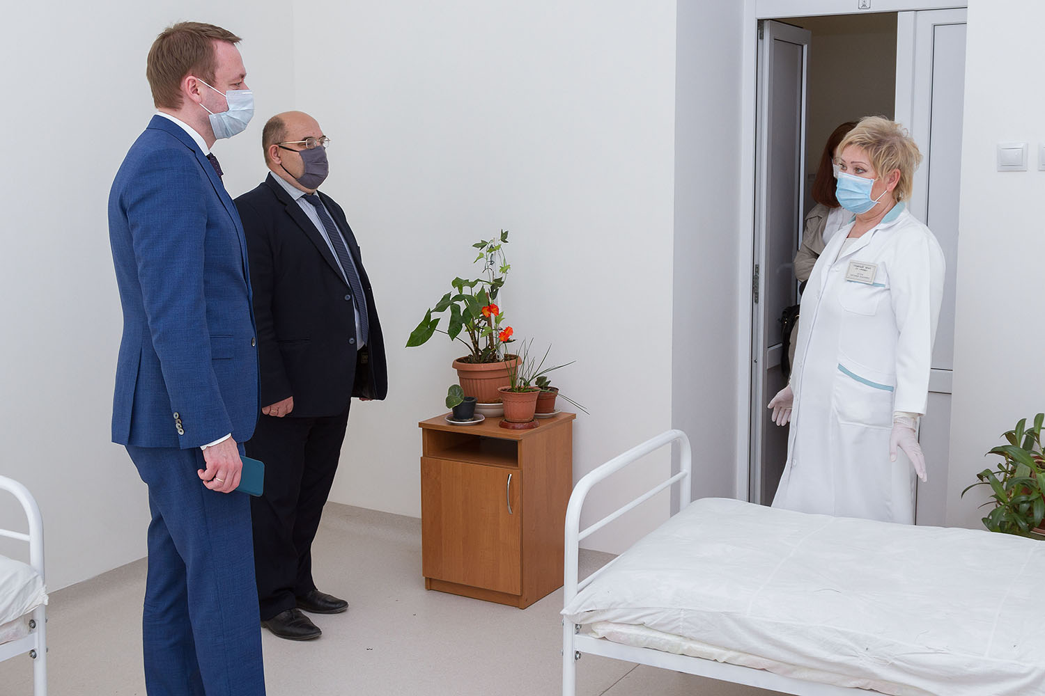 Главврач Евгения Бузук показала Александру Мартынову обновлённые палаты, процедурные кабинеты, санузлы, приёмные врачей, помещения для остального персонала. Диспансер вмещает 20 круглосуточных коек и ещё 15 коек дневного пребывания. Премьер интересовался, что ещё необходимо сделать, чтобы объект был сдан под ключ.