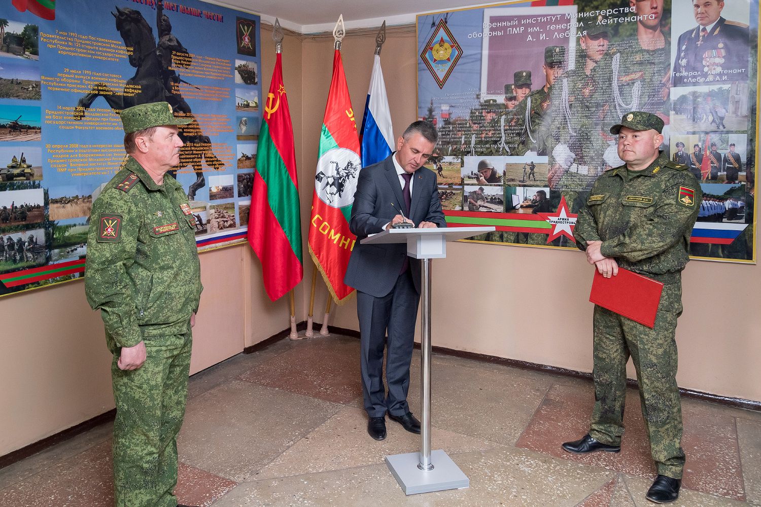 Вадим Красносельский отставил запись в книге почетных посетителей вуза, выразив офицерам-преподавателям благодарность за учебно-боевую подготовку личного состава Вооруженных сил. Президент подчеркнул, насколько велика ответственность, возложенная на тех, кто готовит профессиональных защитников ПМР.