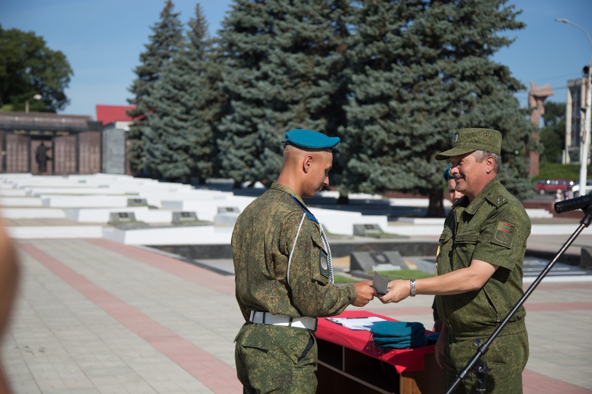 Чеканя строевой шаг, десантники поочередно выходили из строя для вручения главных символов «крылатой пехоты» – беретов небесного цвета, значков и удостоверений парашютистов. Теперь бойцы парашютно-десантного подразделения – полноправные члены десантной семьи.