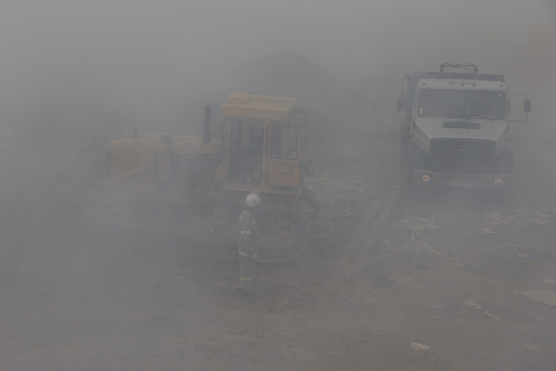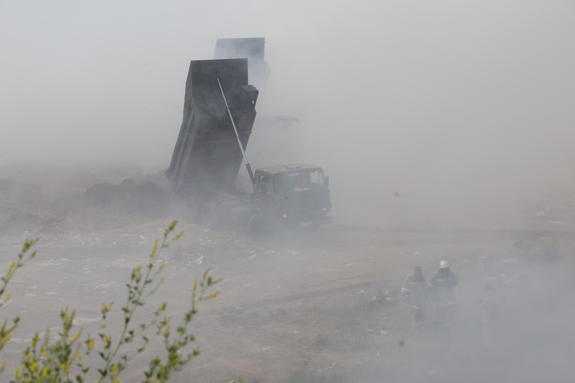 Пожарные хотят воспрепятствовать попаданию кислорода в нижние слои отходов, где до сих пор продолжается тление