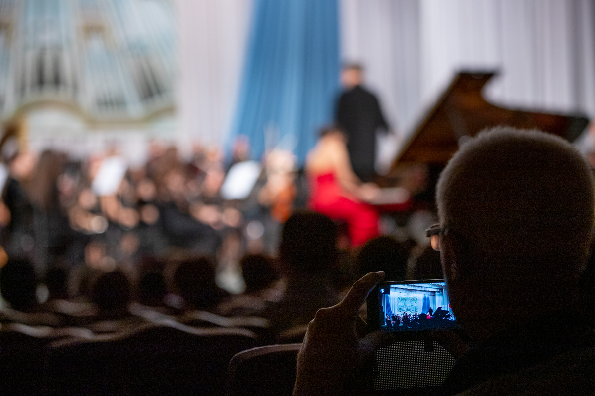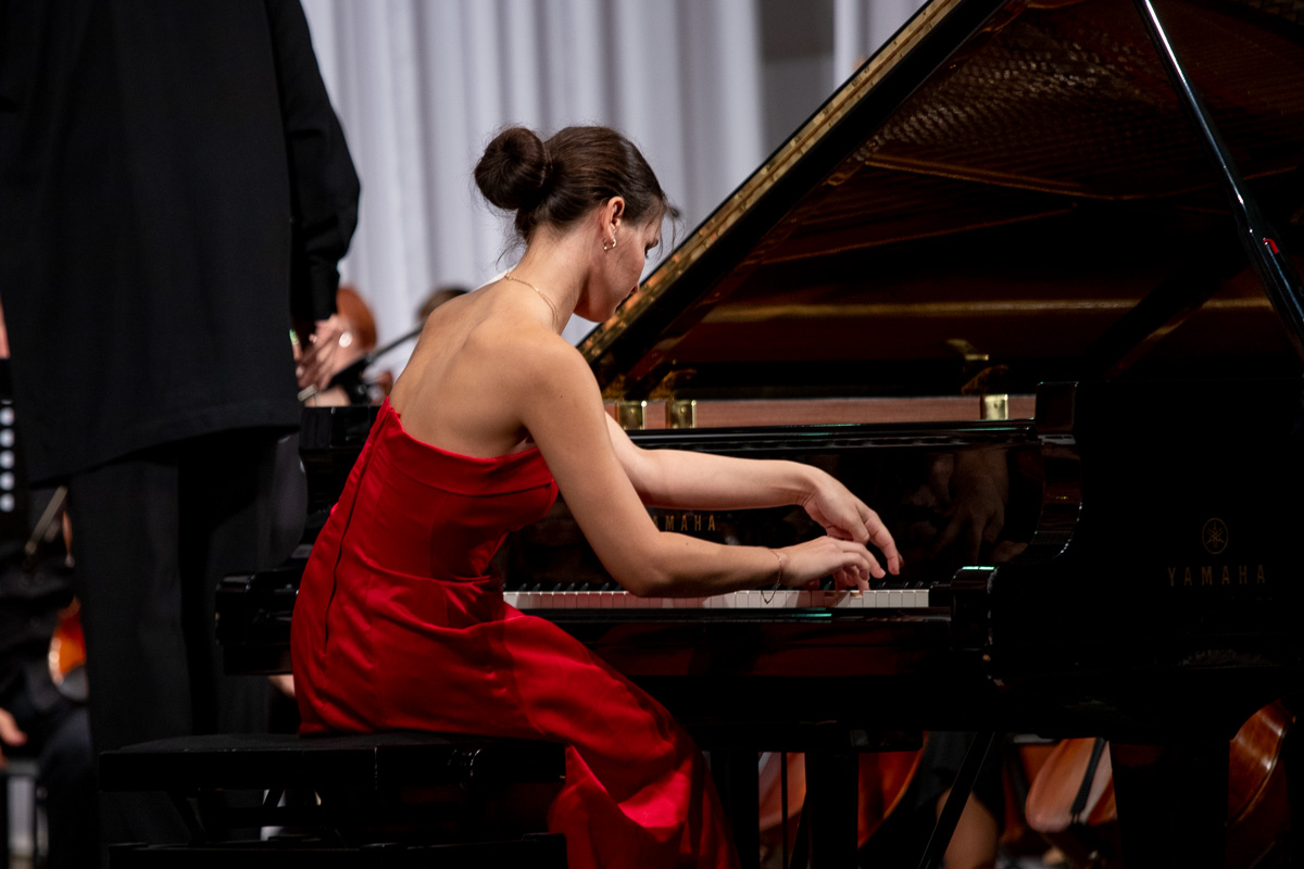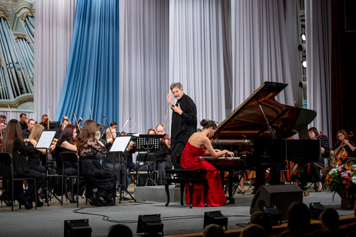 Началось представление с «Концерта № 2 для фортепиано с оркестром» Сергея Рахманинова. Величайшее творение русского композитора считается образцом победы человека над всеми невзгодами и силами зла. Сольную партию в этом произведении исполнила гостья из Одессы лауреат международных премий Элина Иванова.