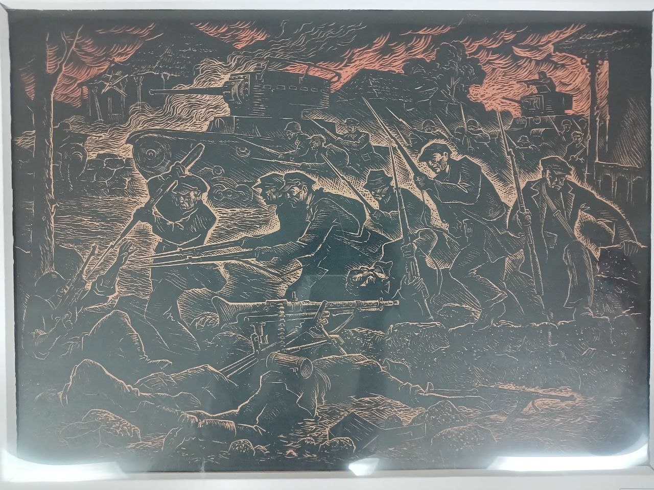 Серия линогравюр Г. М. Зыкова посвящена освобождению края от фашистов. В программе также просмотр кинофильмов о Великой Отечественной. Сегодня продемонстрировали фильм «Ясско-Кишинёвская операция» (1977 г.).