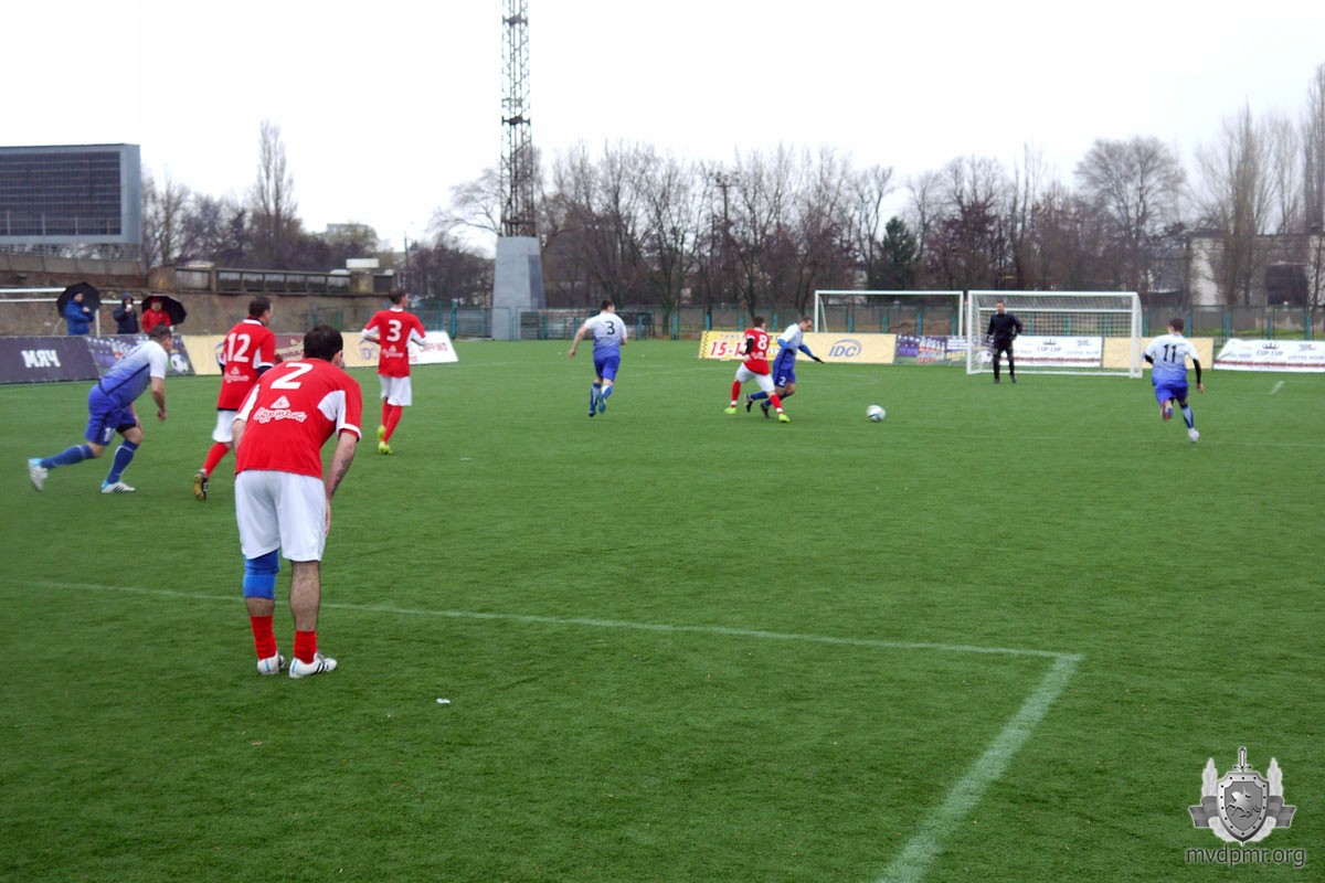 Матч проходил сегодня в Тирасполе под проливным дождём, однако команды показали качественную игру, сообщает пресс-служба Министерства внутренних дел. Поединок был равный. Вратарям обеих команд часто приходилось вступать в игру и спасать свои ворота от гола. Поддержать команду «МВД» прибыл глава ведомства Руслан Мова.